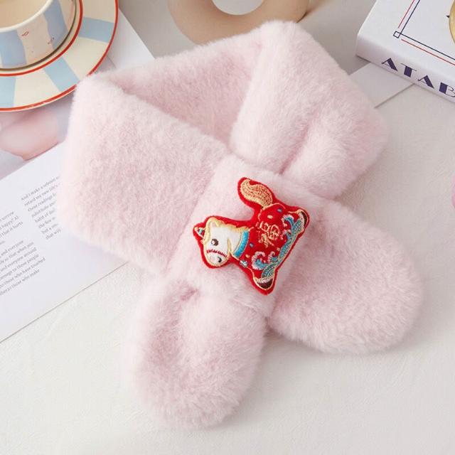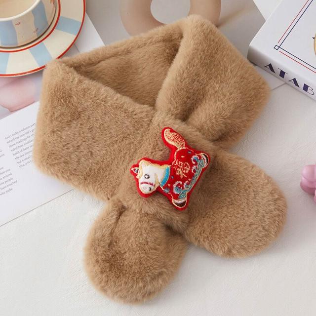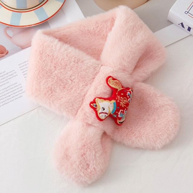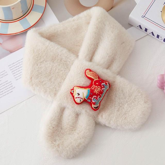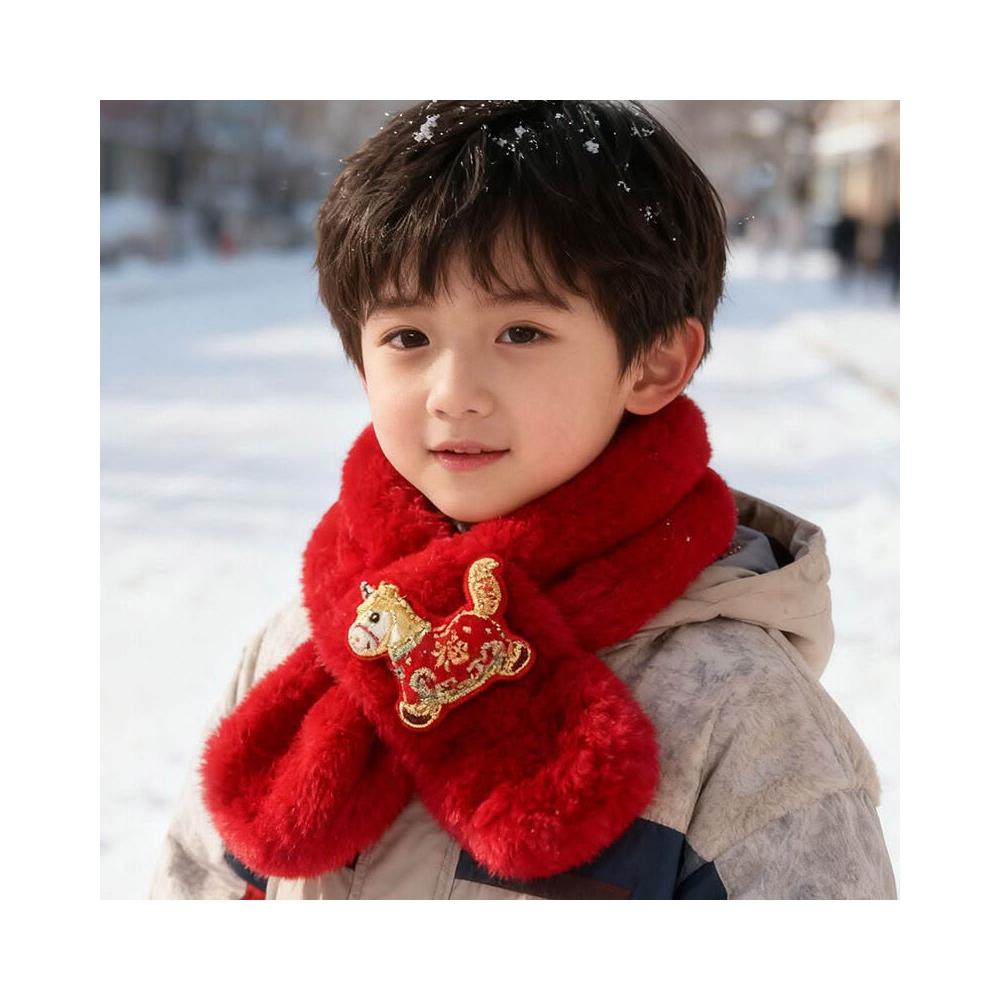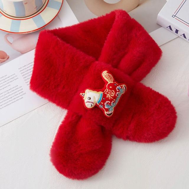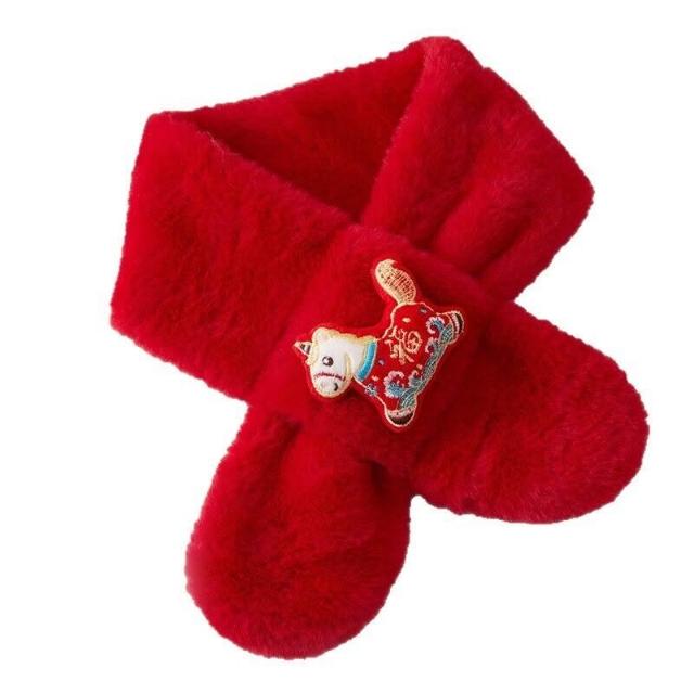 PEZK優選 新年款圍巾中國紅圍巾國風卡通馬年新圍巾仿兔毛喜慶圍脖