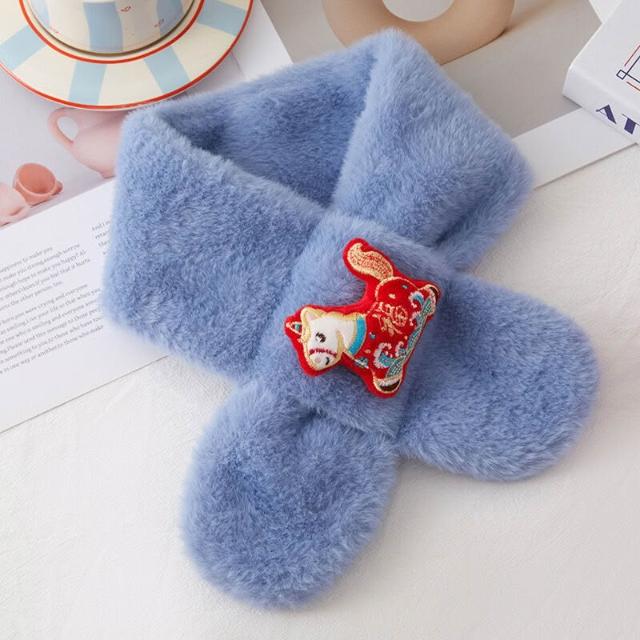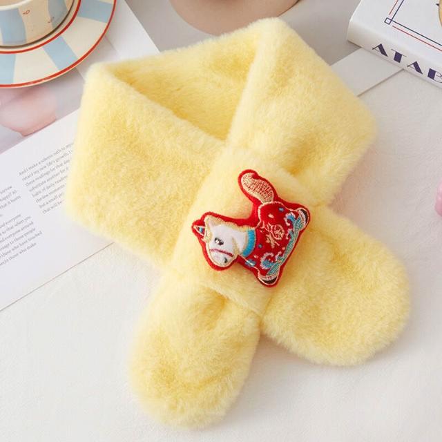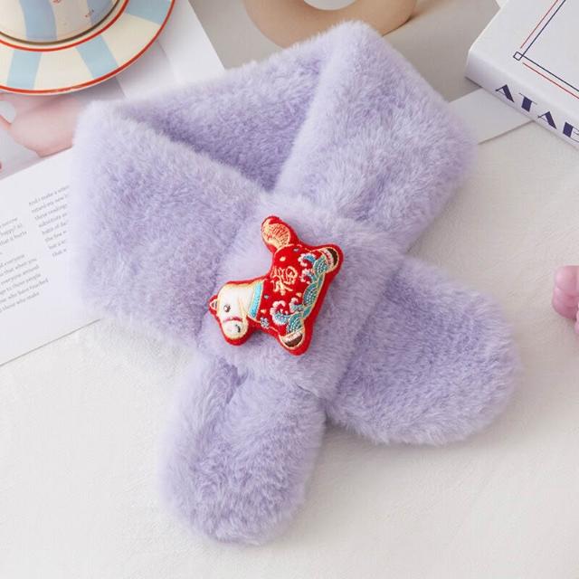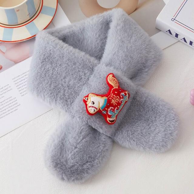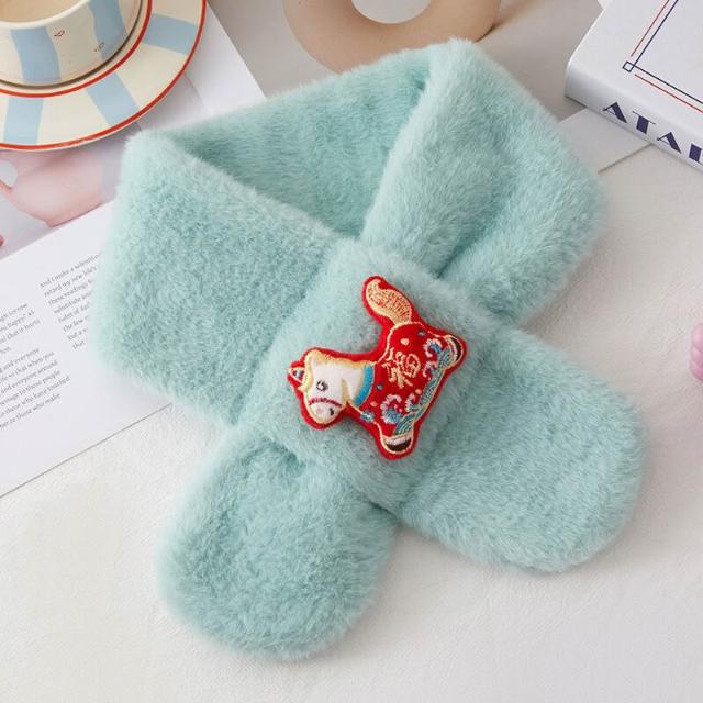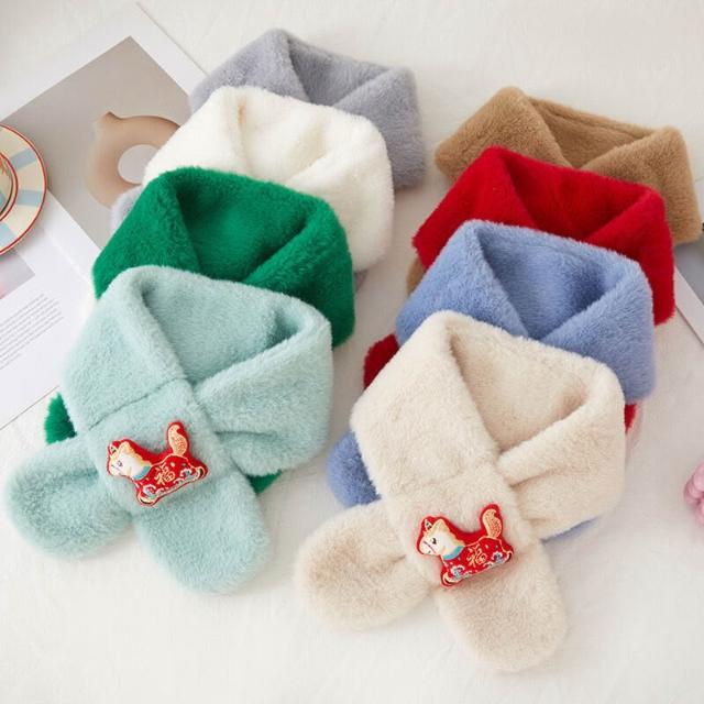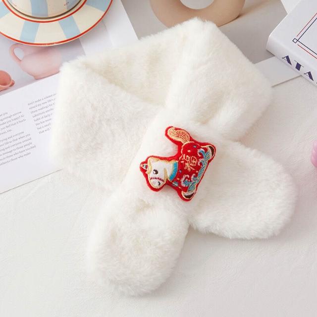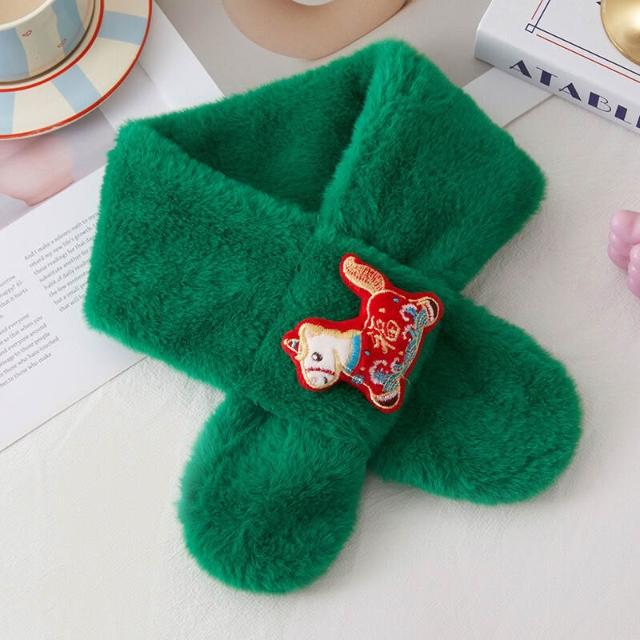 PEZK優選 新年款圍巾中國紅圍巾國風卡通馬年新圍巾仿兔毛喜慶圍脖