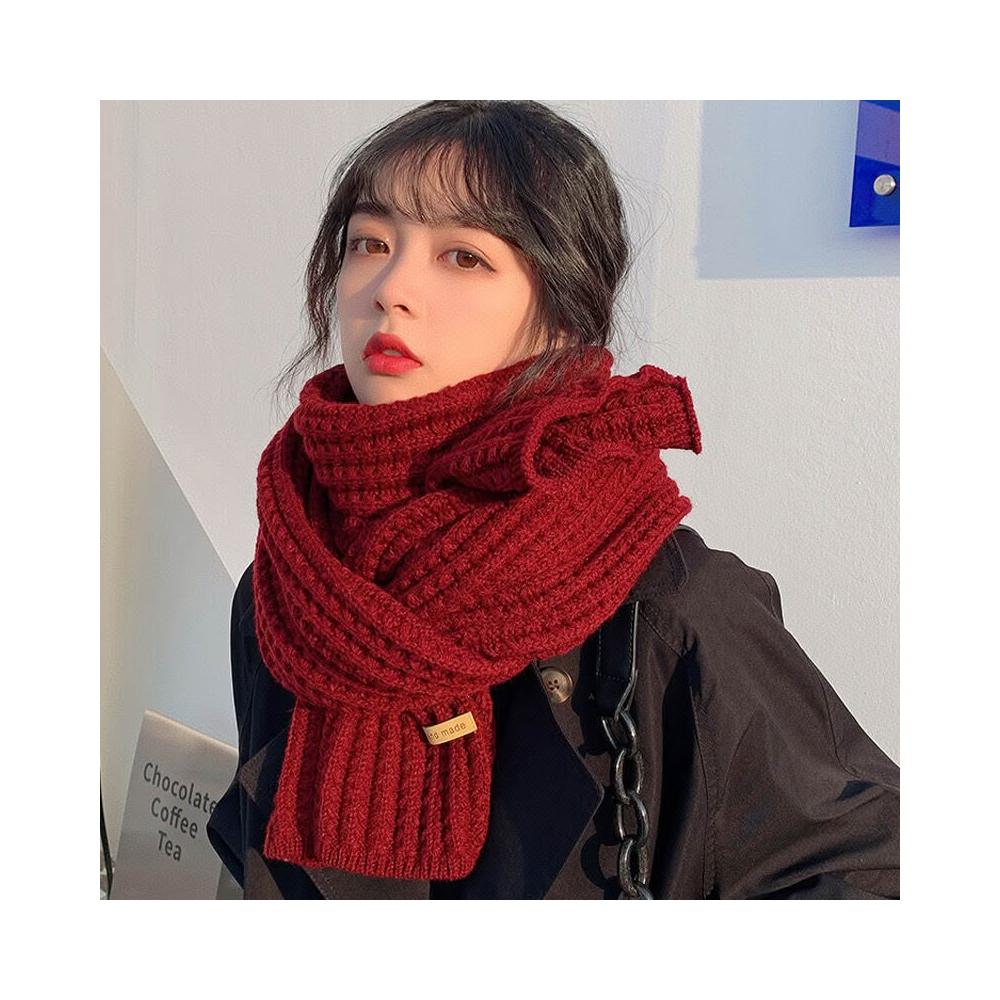 PEZK優選 百搭韓版針織毛線紅色圍巾女2025新款冬季高級感新年禮物情侶圍脖