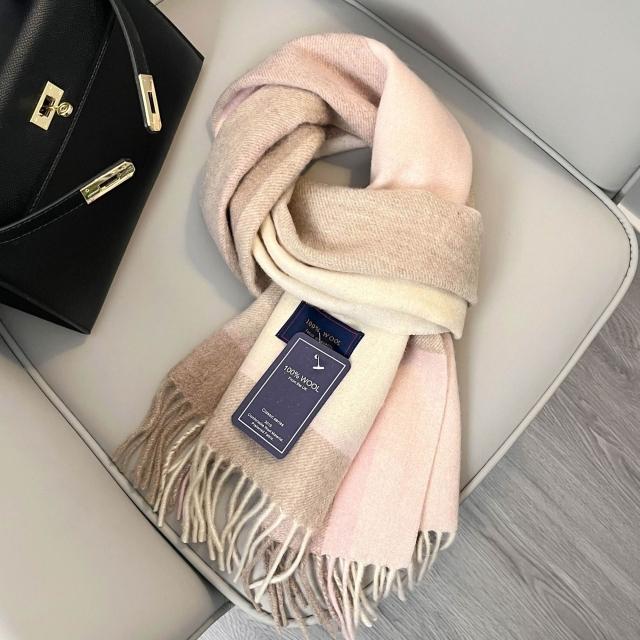 PEZK優選 英國經典100%羊毛格子紅色圍巾男女情侶款秋冬季保暖羊絨圍脖