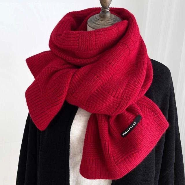 PEZK優選 秋冬季純色毛線針織提花圍巾小香風韓版男女款戶外保暖