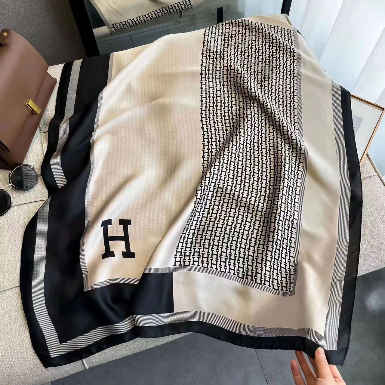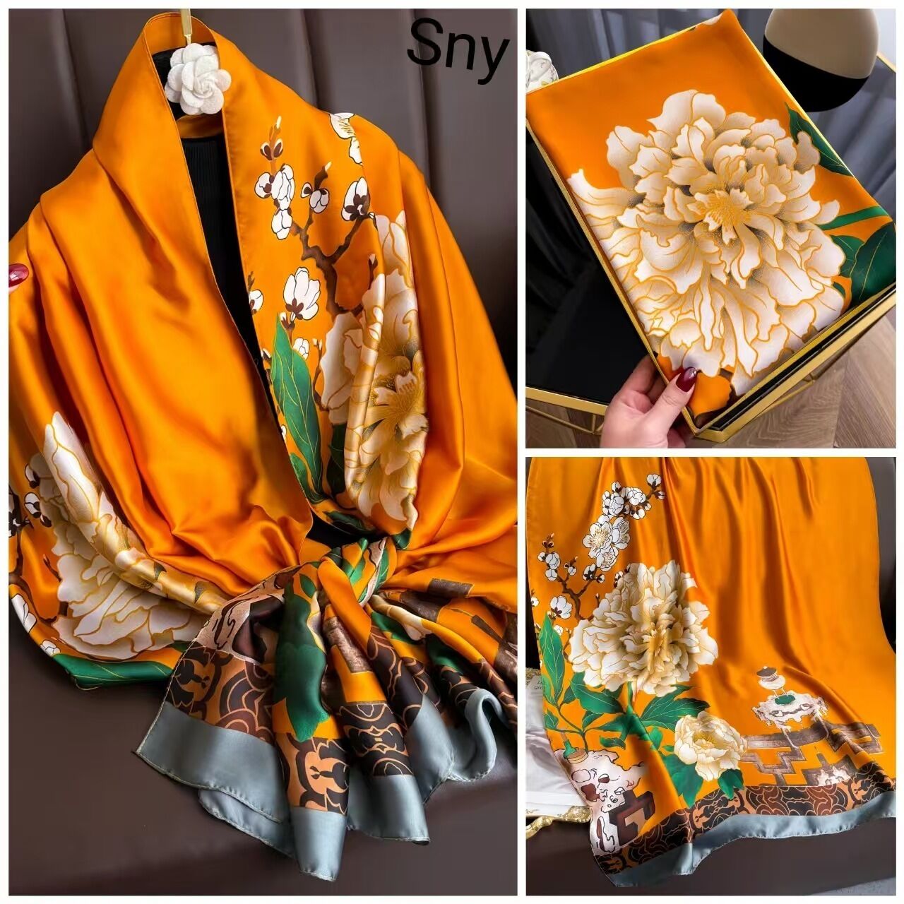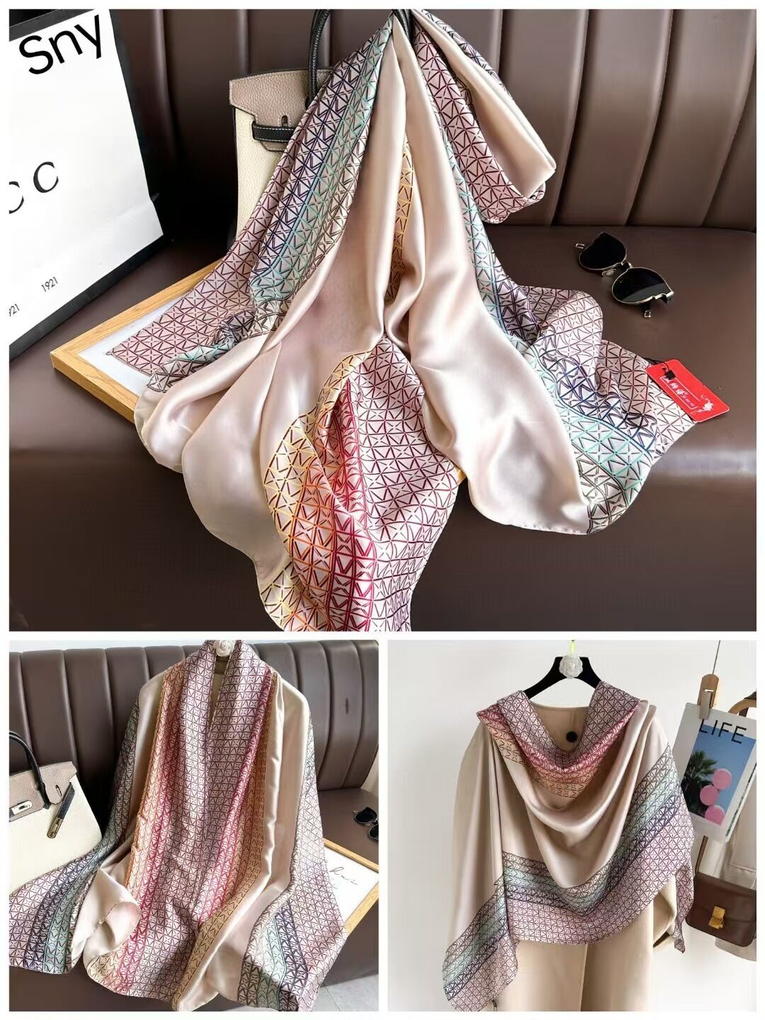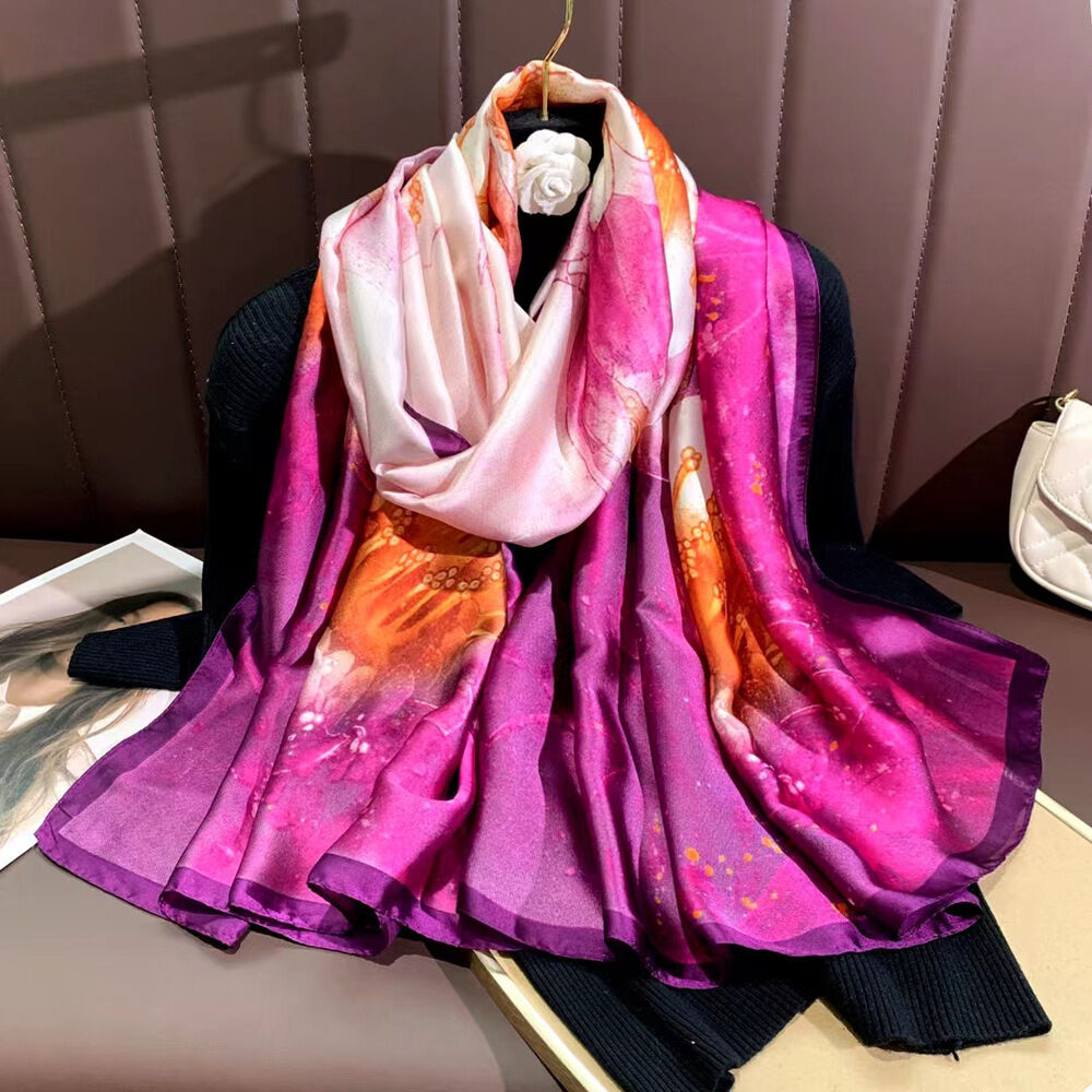 PEZK優選 春夏薄款絲巾高級感印花長巾新款緞面旅遊防曬紗巾民族風披肩