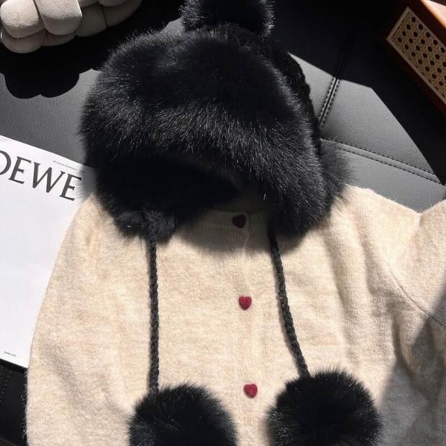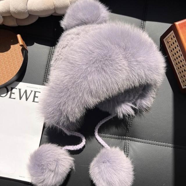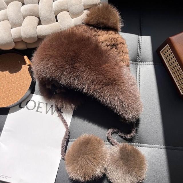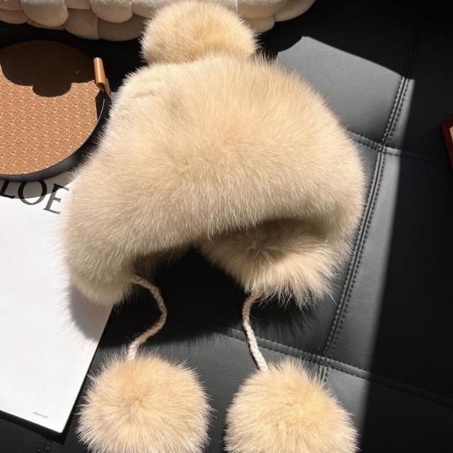 PEZK 優選 水貂毛護耳毛絨帽子女秋冬東北保暖狐貍毛皮草雷鋒帽高級感顯臉小 c7f