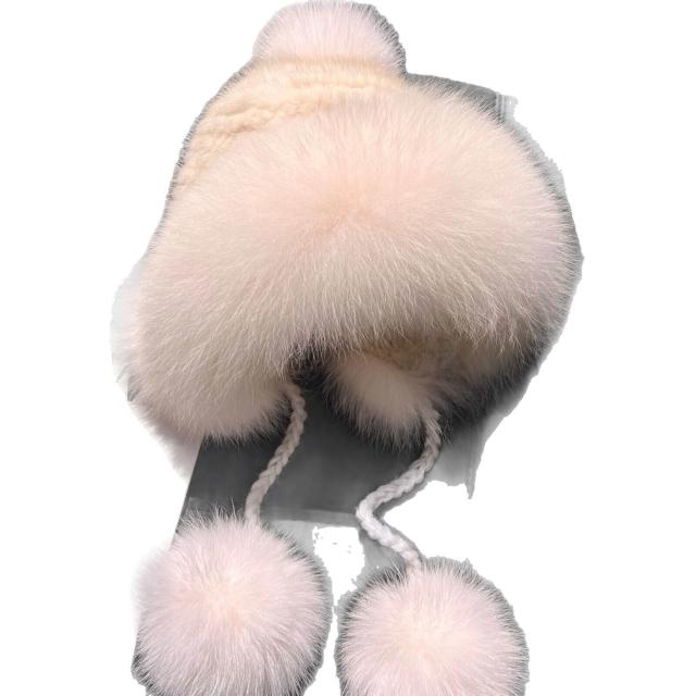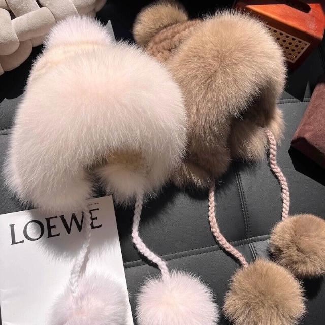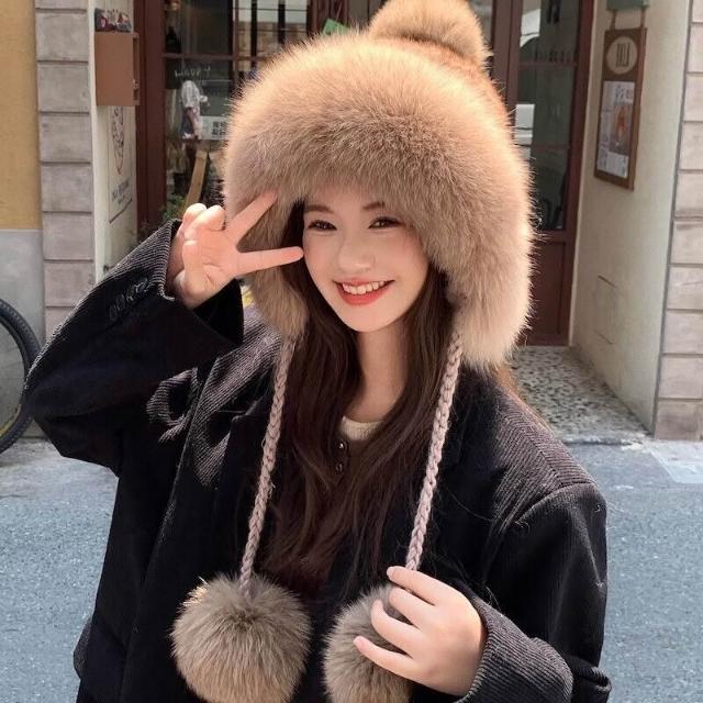 PEZK 優選 水貂毛護耳毛絨帽子女秋冬東北保暖狐貍毛皮草雷鋒帽高級感顯臉小 c7f
