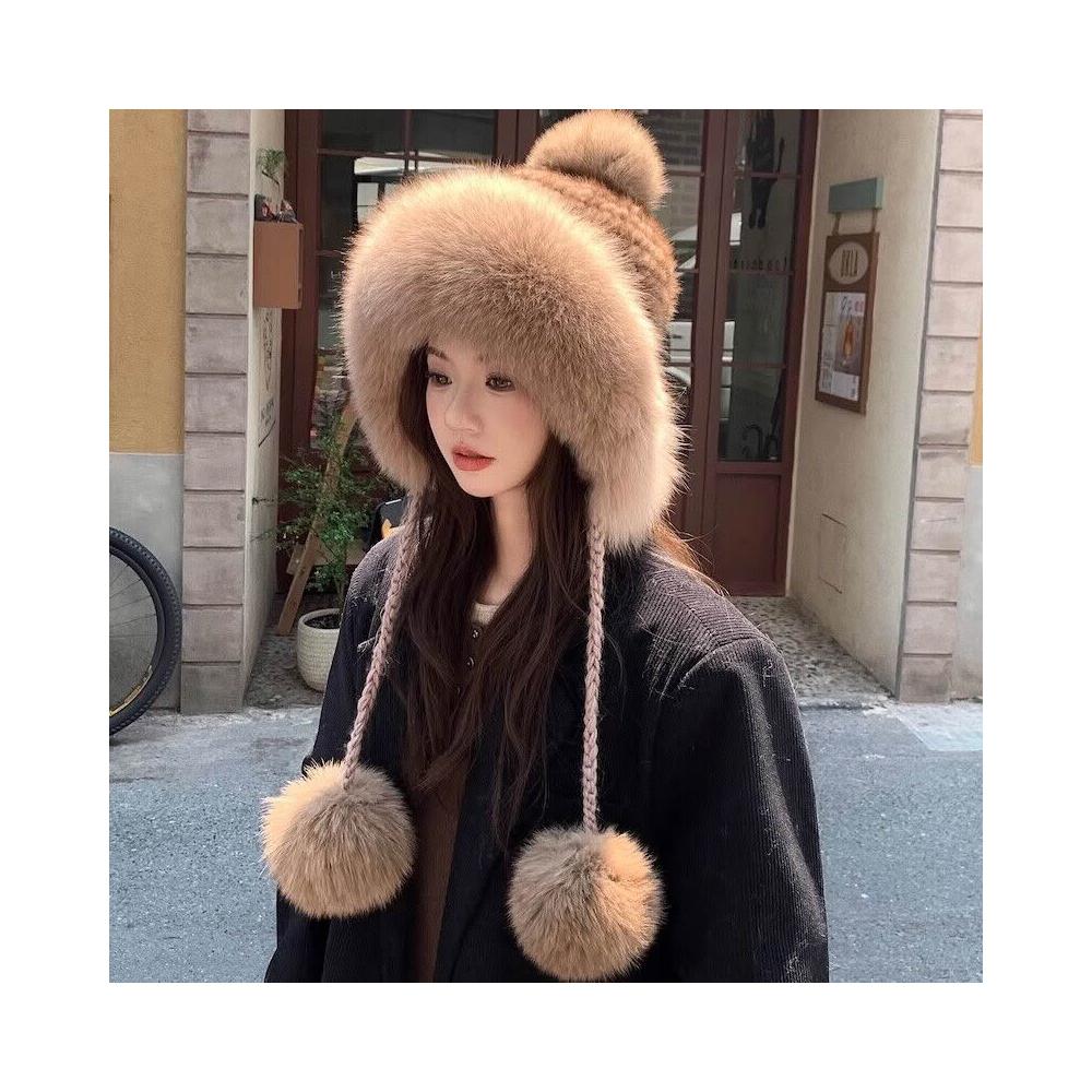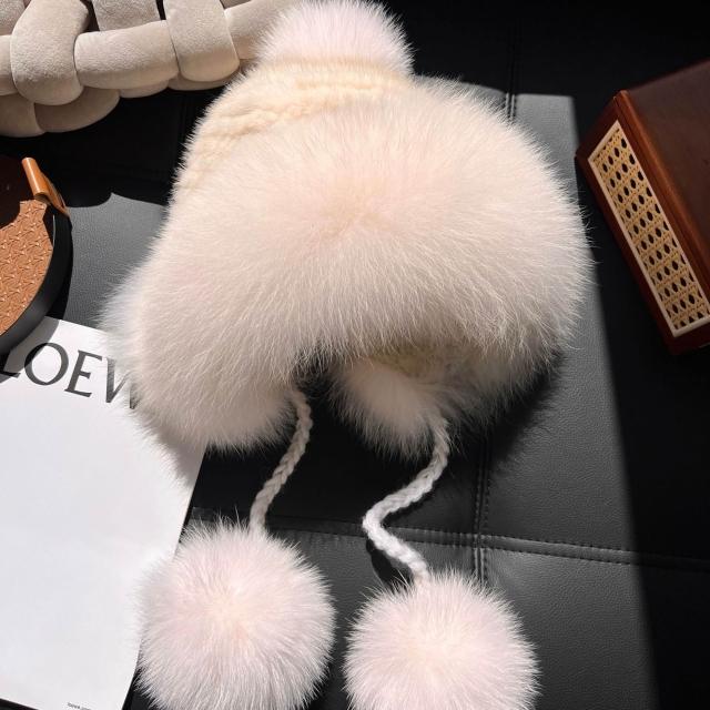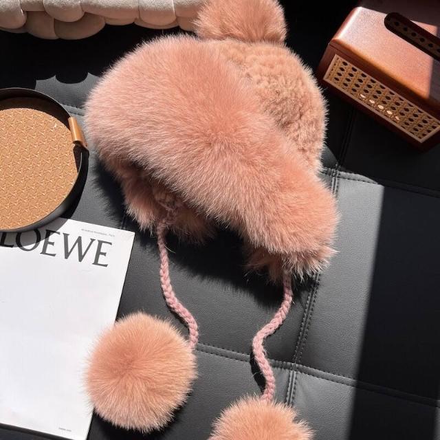PEZK 優選 水貂毛護耳毛絨帽子女秋冬東北保暖狐貍毛皮草雷鋒帽高級感顯臉小 c7f
