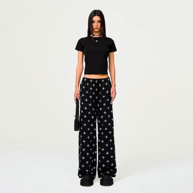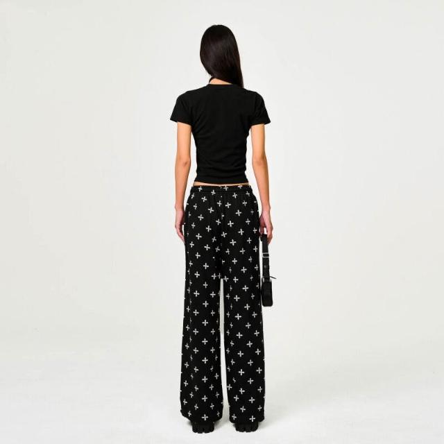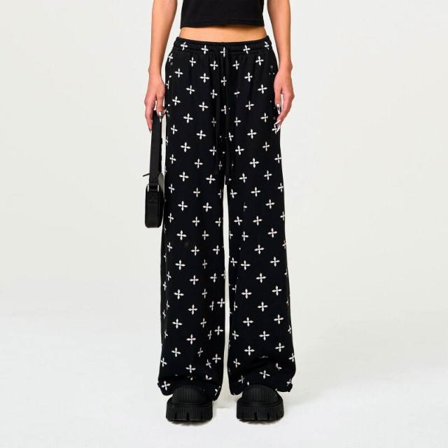 PEZK 優選 SMFK黑花園闊腿運動褲寬松純棉十字花滿印休閑褲25新款 657