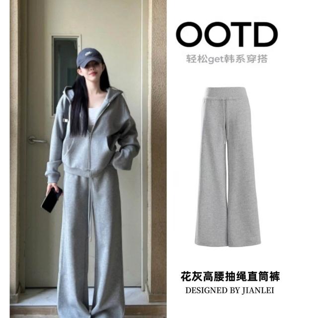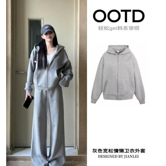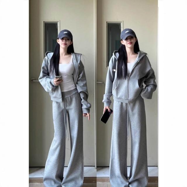 灰色休閑運動套裝早春穿搭巨好看韓系一整套衛衣衛褲運動裝兩件套 70d