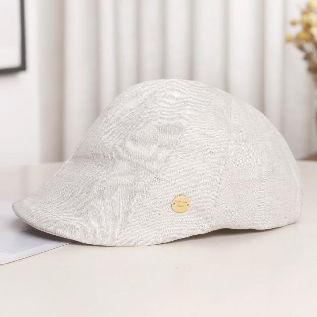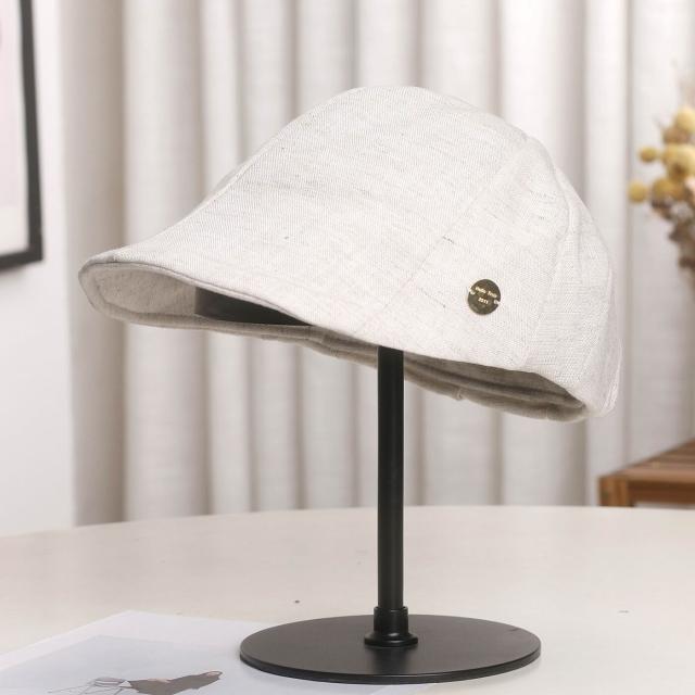 日系復古亞麻前進帽女春夏薄款透氣鴨舌貝雷帽大頭圍顯臉小畫家帽 a7a