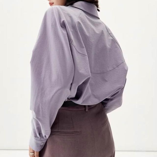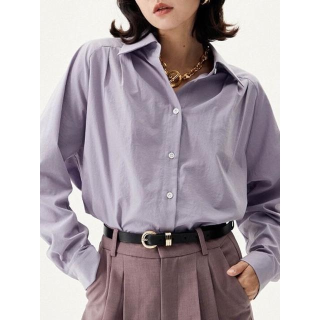 三所vintage 復古抗皺插肩袖紫色襯衫女秋法式別致古著女襯衣高級 b04