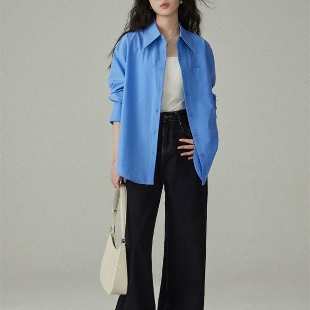 四季可穿襯衫!克萊因藍法式空氣感職業通勤微寬松長袖襯衣 402