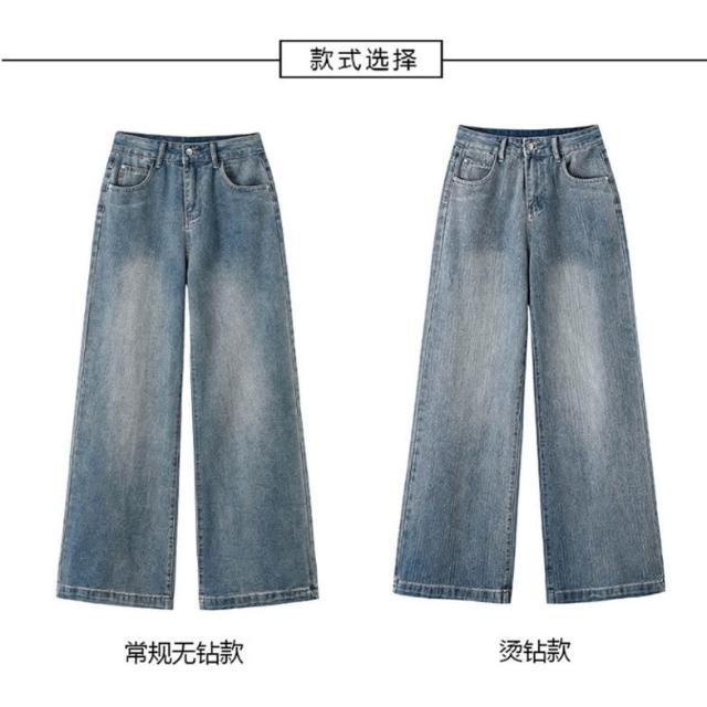 服飾流光碎鉆爆閃闊腿牛仔褲女2025冬季加絨高腰慵懶堆堆長褲 608