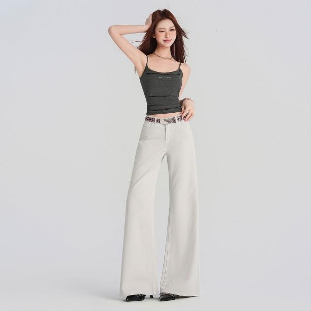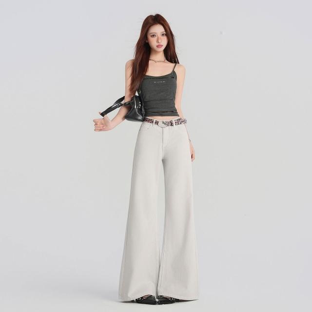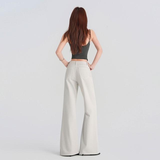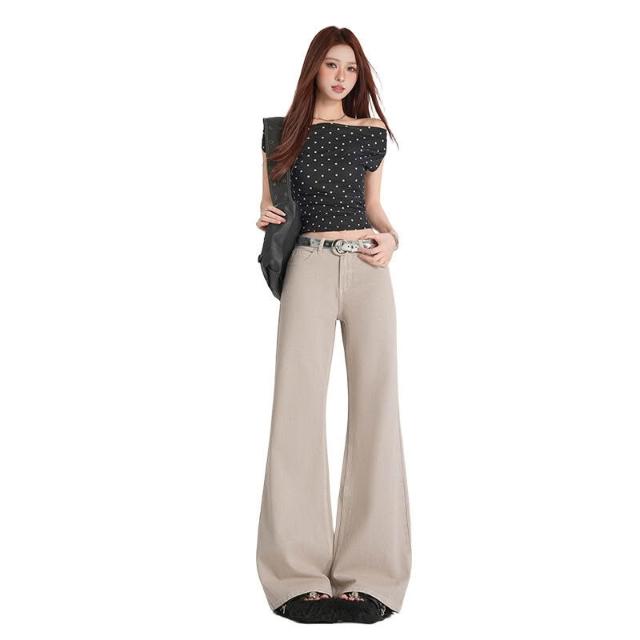 月光灰高級定染工藝牛仔褲女春夏2026新款美式顯瘦不貼腿微喇褲子 6f3
