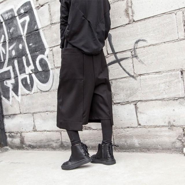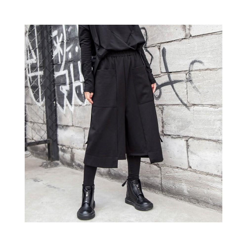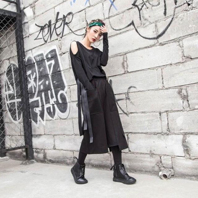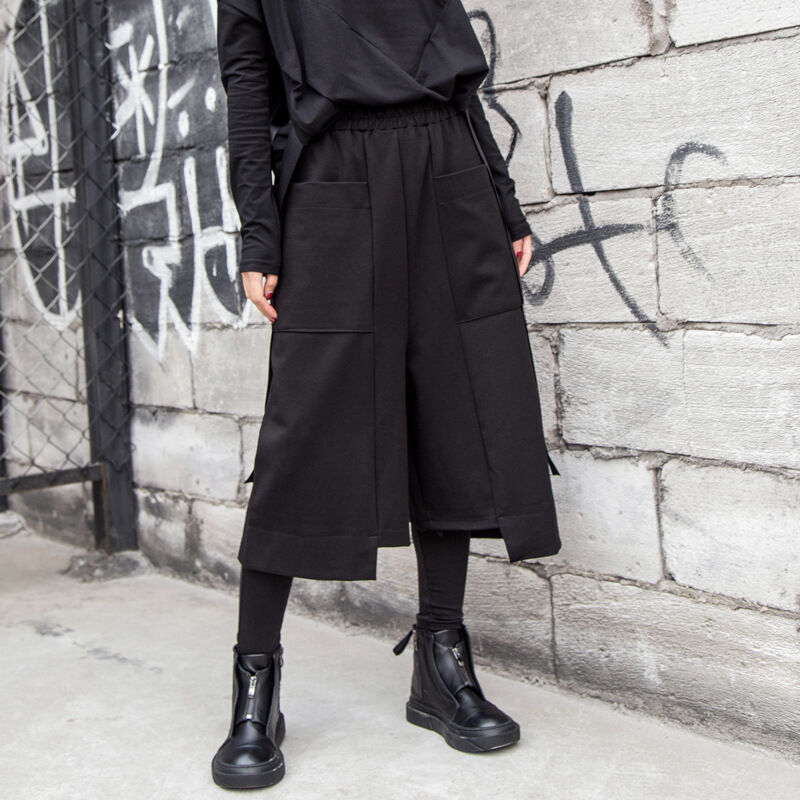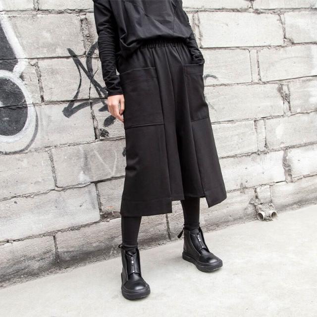 闊腿褲春秋歐美街頭新款女裝七分褲休閑寬松直筒不規則大口袋褲潮 2e7