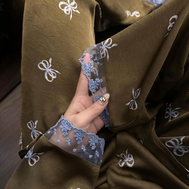 韓系高級感蝴蝶結印花冰絲睡衣女2025夏季休閑大碼套裝外穿家居服 44b