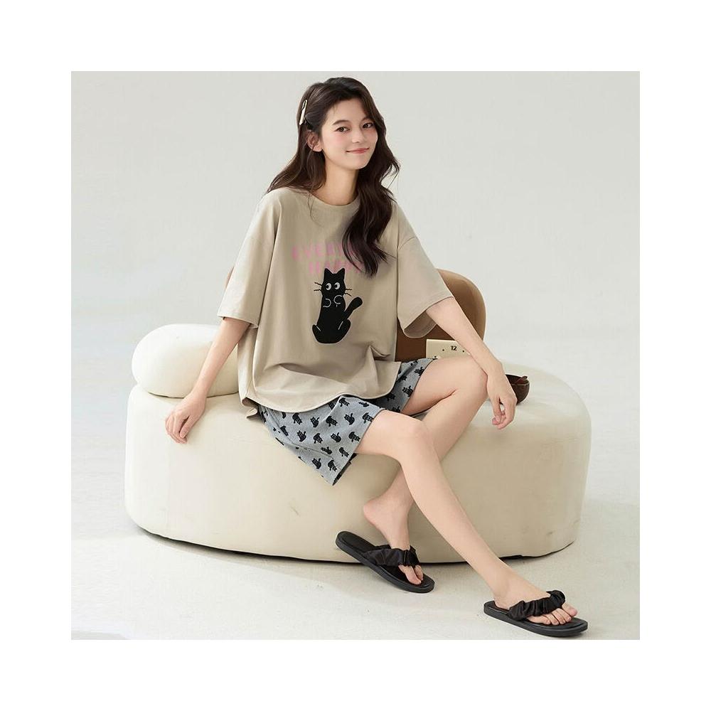 A類100%純棉夏天睡衣女短袖短褲卡通套裝大碼休閑夏季女士家居服 3e8