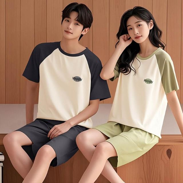 情侶睡衣女夏季冰絲短袖短褲套頭圓領家居服男時尚薄款套裝外穿 7c8