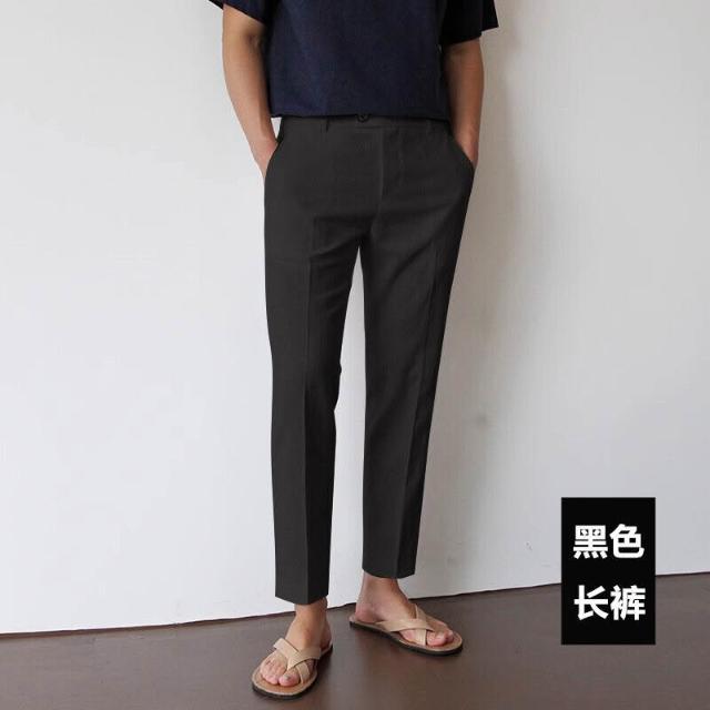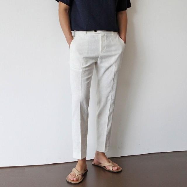 跨境亞麻西褲男白色棉麻料九分褲男士休閑褲透氣西裝褲子直筒大碼 209