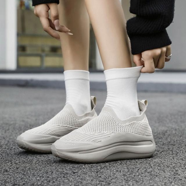 爆款潮流情侶運動鞋男女透氣飛織跑步鞋四季款套腳厚底旅遊鞋 a2e