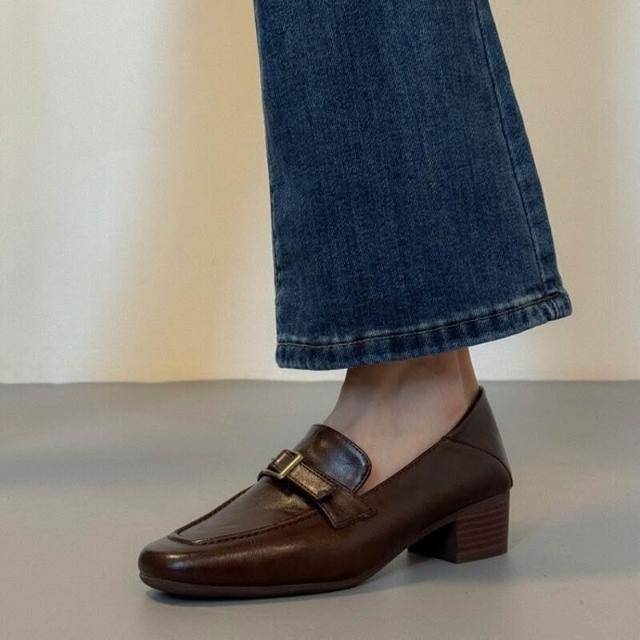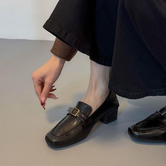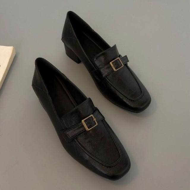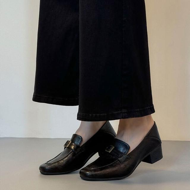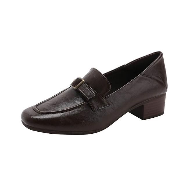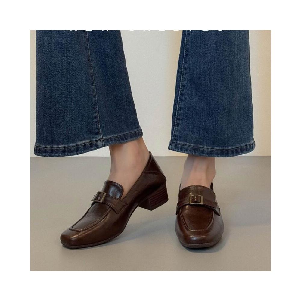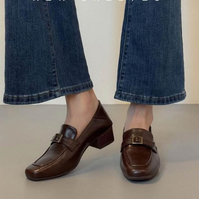 牛皮方頭樂福鞋女2026春秋新款通勤粗跟法式單鞋百搭英倫風小皮鞋 512