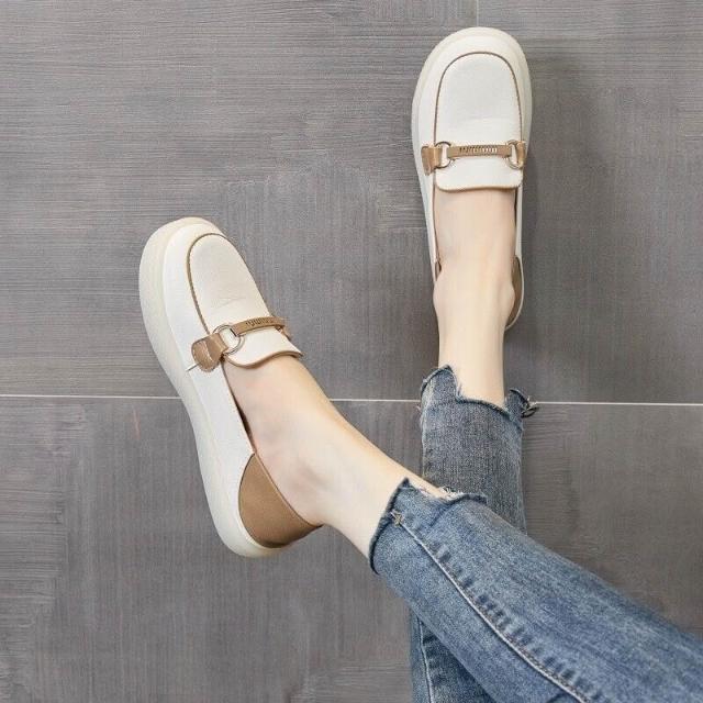 一腳蹬女鞋夏季2025新款小白鞋休閑女士真皮軟底牛皮樂福鞋牛筋底 67d