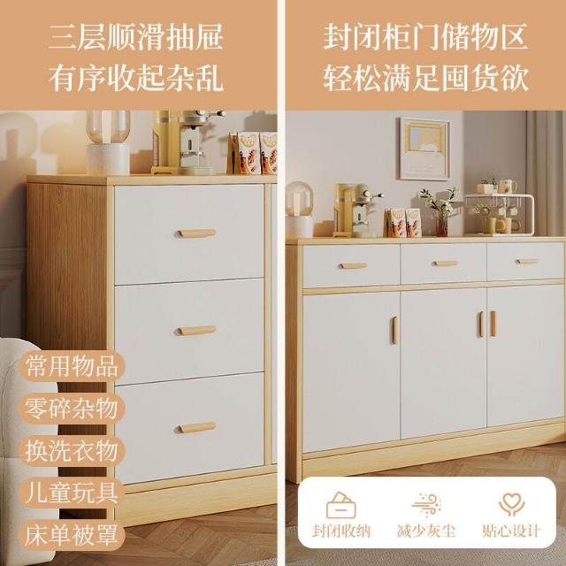 茶水櫃儲物櫃家用實木芯餐邊櫃客廳落地靠墻墻邊櫃一體置物櫃櫃子 703