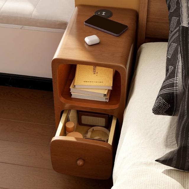 臥室迷你小型極窄帶燈床邊櫃出租屋超窄櫃子極窄置物架實木床頭櫃 c72