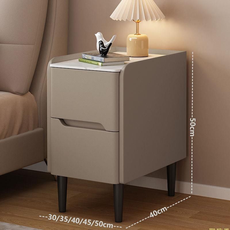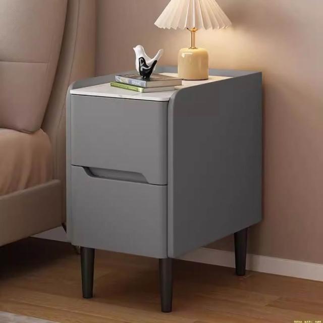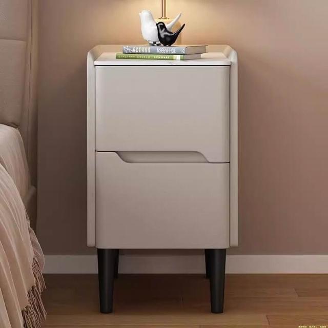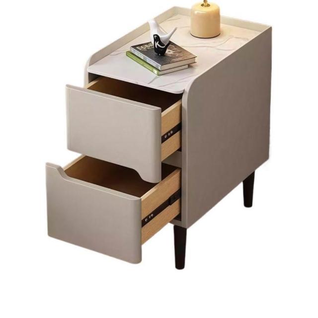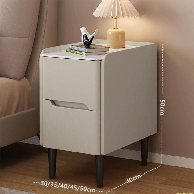 輕奢小型收納臥室超窄床邊櫃30CM巖板實木床頭櫃現代簡約皮質家用 d81