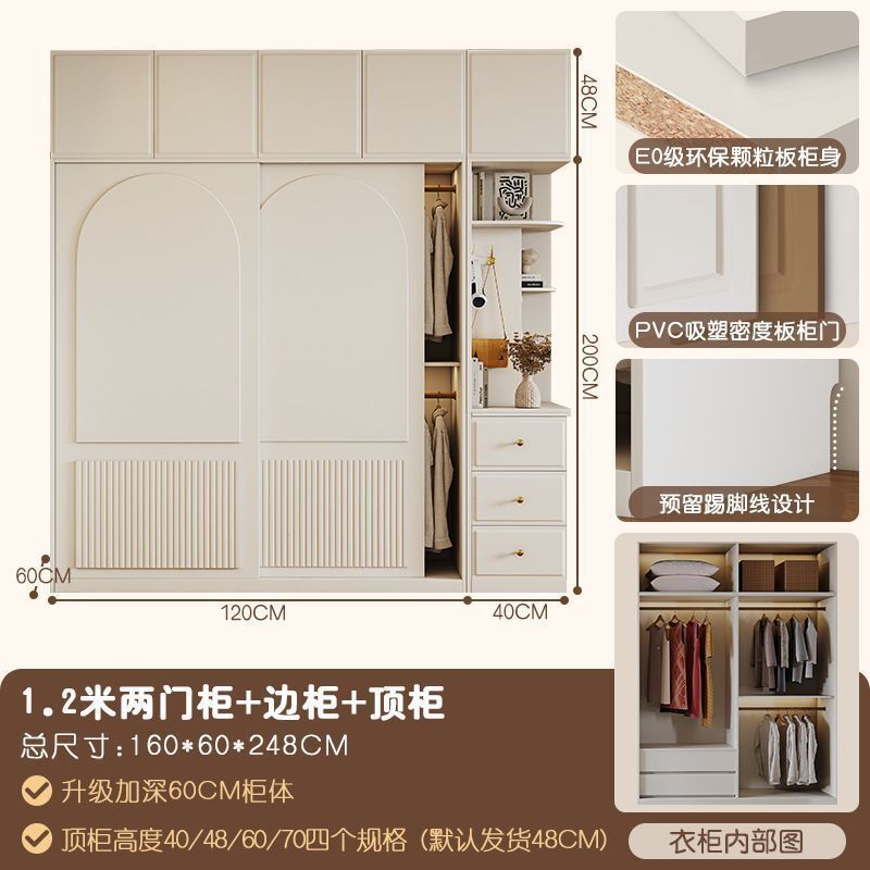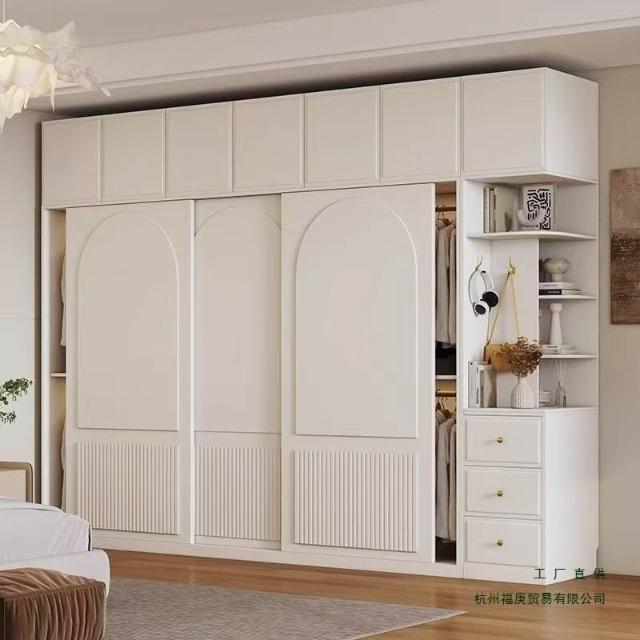 奶油風衣櫃臥室白色簡約現代小戶型推拉門家用滑移門儲物衣櫥櫃子 9dd