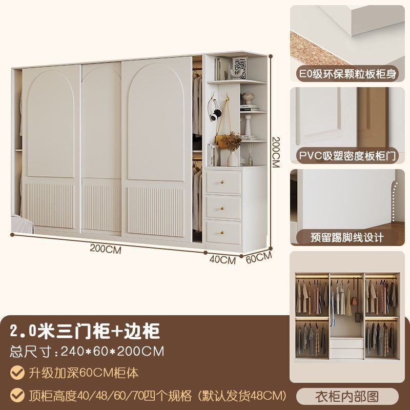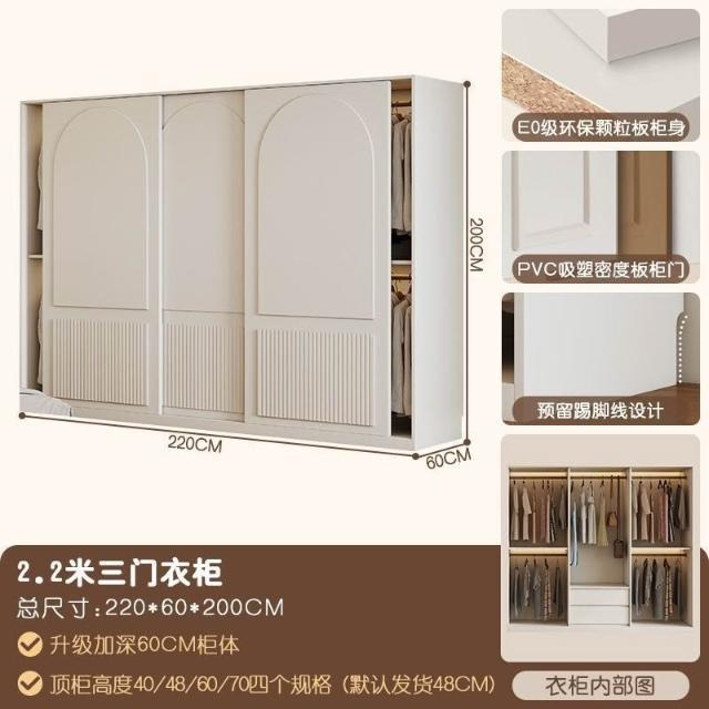奶油風衣櫃臥室白色簡約現代小戶型推拉門家用滑移門儲物衣櫥櫃子 9dd