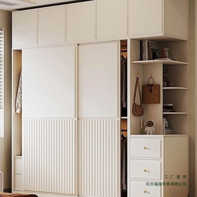 奶油風衣櫃臥室白色簡約現代小戶型推拉門家用滑移門儲物衣櫥櫃子 9dd