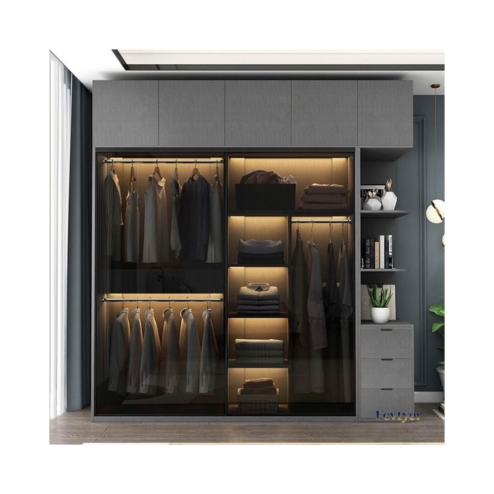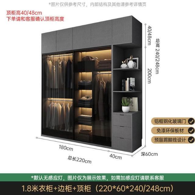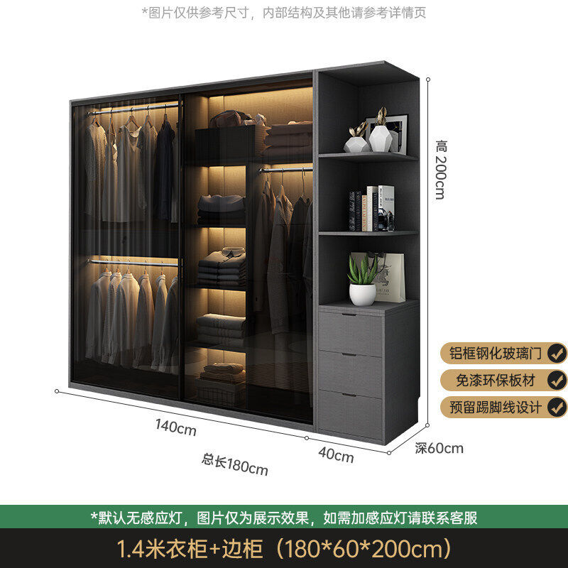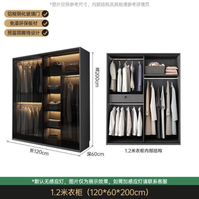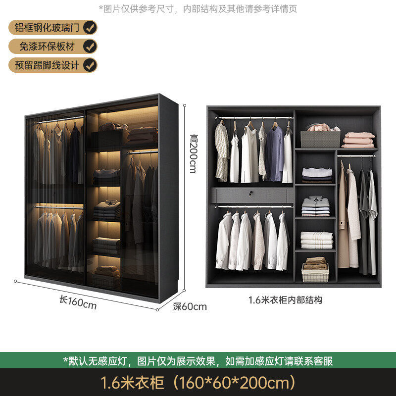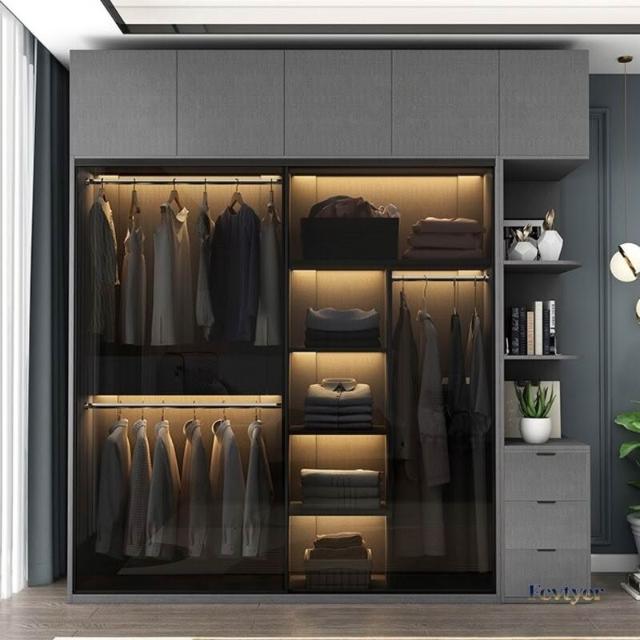 現代簡約衣櫃臥室家用玻璃推拉門整體收納櫃子趟門儲物櫃灰色衣櫥 91f