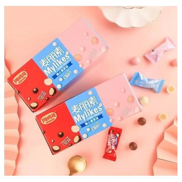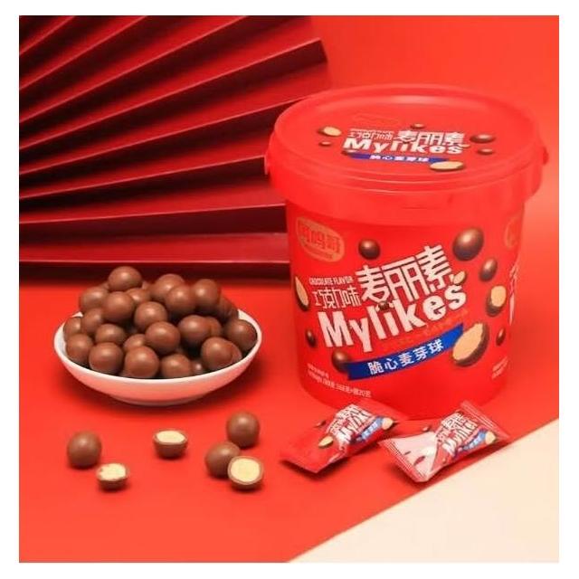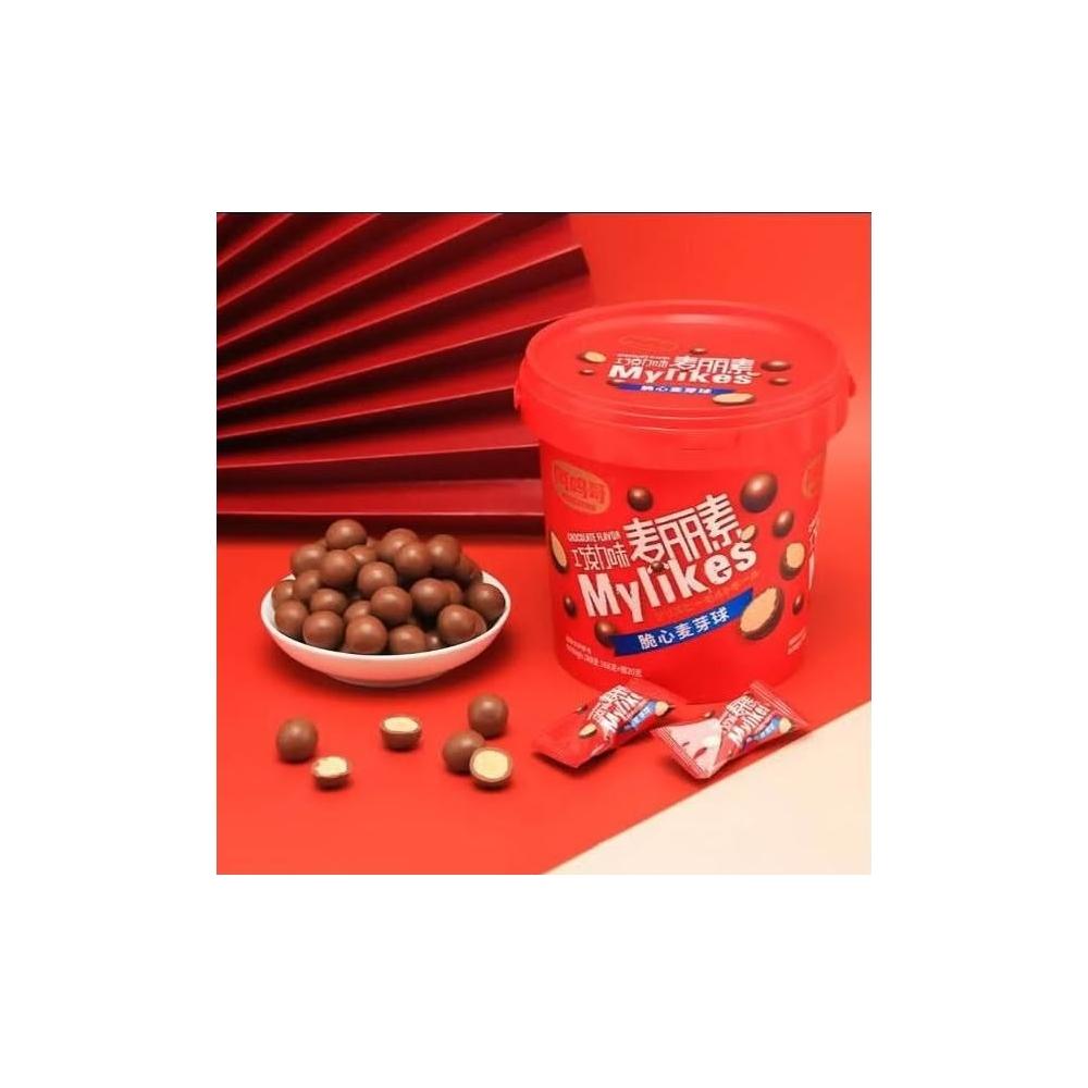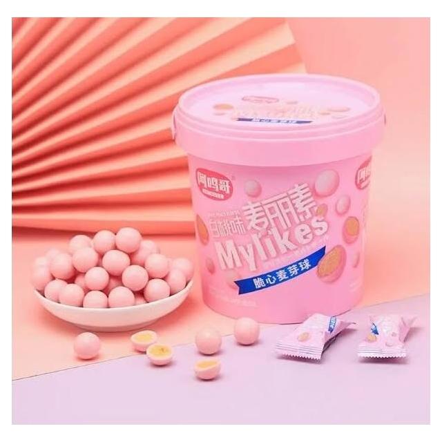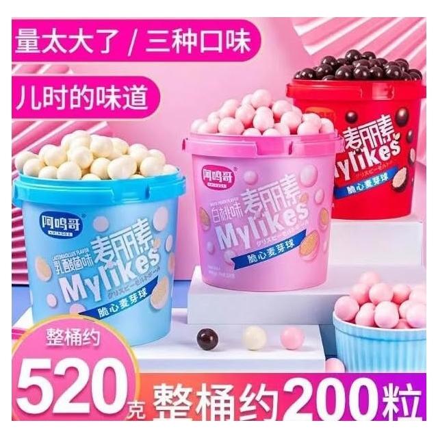 優選 白桃味麥麗素大桶裝巧克力豆脆心球兒童糖果懷舊休閑零食