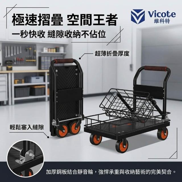 Vicote 維科特手推車 折疊拉貨車 小拉車 倉庫拖車 便攜四輪小推車 搬運平板車 便攜四輪搬貨車 強承重800斤