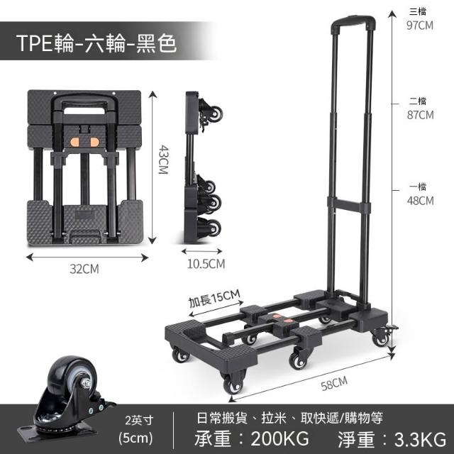 Vicote 維科特手推车 搬貨拉桿車 便攜手拉車 戶外小拖車 取快遞購物車 折疊六輪車 帶剎車 載重100KG