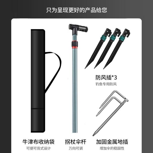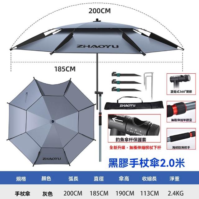 Vicote 維科特露營傘 戶外釣魚傘 大釣傘 折疊傘 拐杖傘 雙層防曬遮陽傘 黑膠加厚2.0米 加大傘面 防暴雨