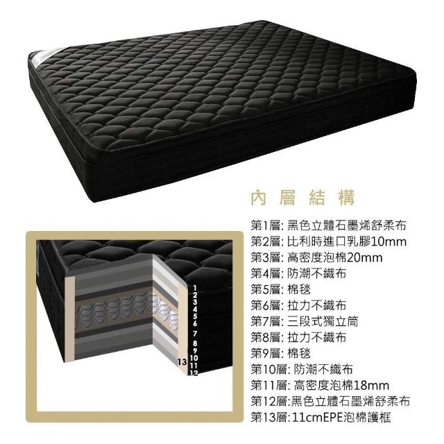 obisLouise鑽黑系列奈米石墨烯三線乳膠三段式獨立筒無毒床墊