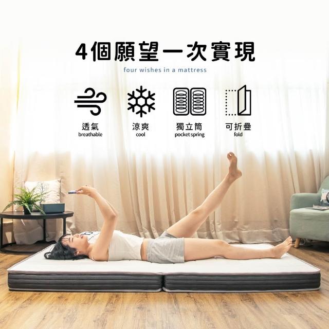 obisOne Cool冰峰涼感天絲可折/對摺獨立筒折疊床墊/薄墊