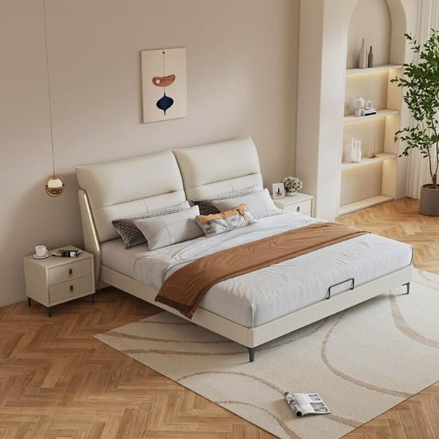 主臥真皮軟床儲物皮藝床新款1.8米床架輕奢風真皮軟包時尚婚床