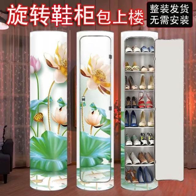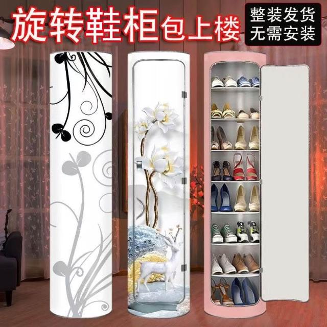 旋轉鞋櫃 圓形360度 立式鞋櫃 多層儲物鞋架 大容量多功能收納櫃家用