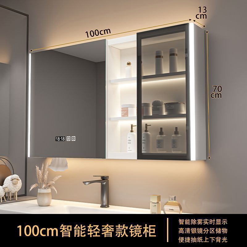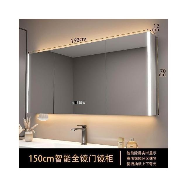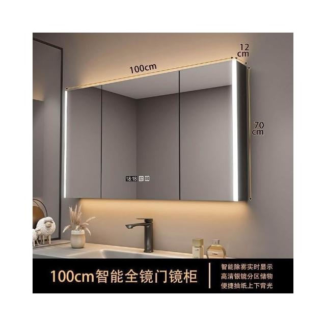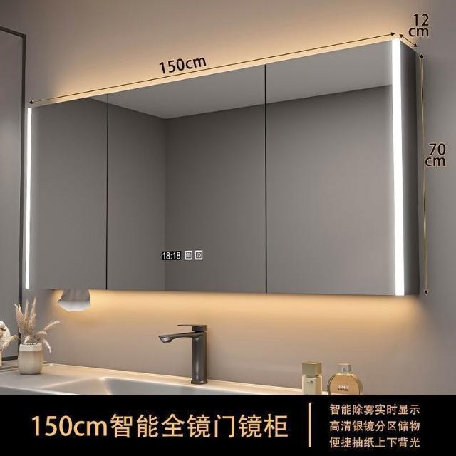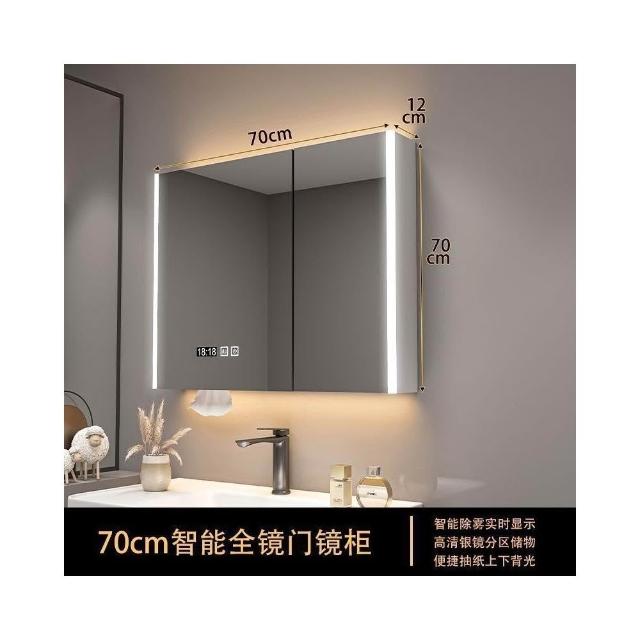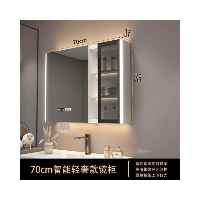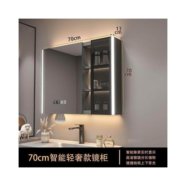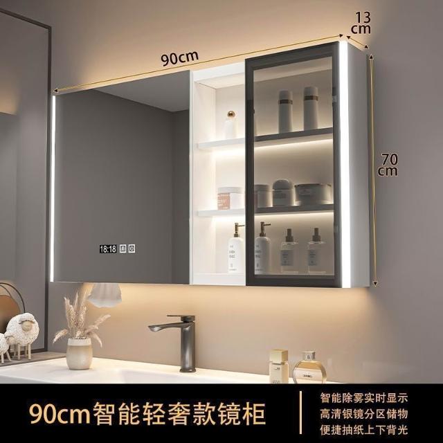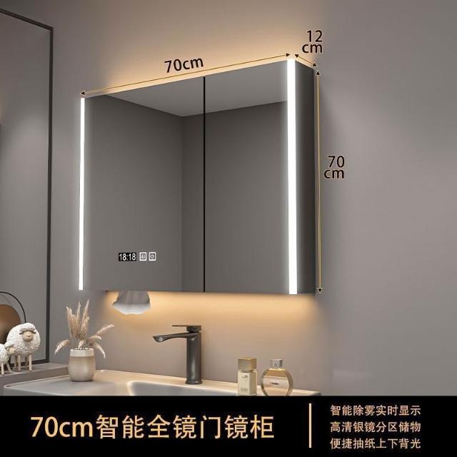 實木浴室智能鏡櫃 單獨掛墻式帶燈 除霧衛生間鏡子帶收納一體櫃