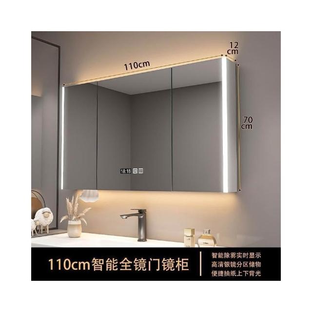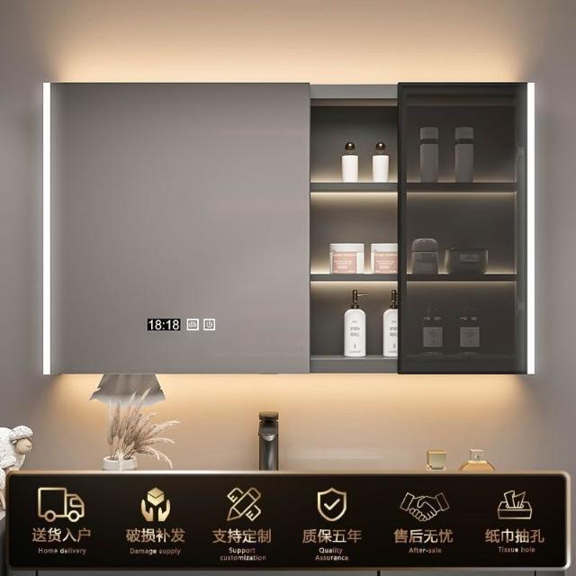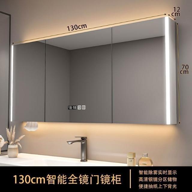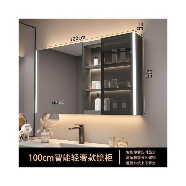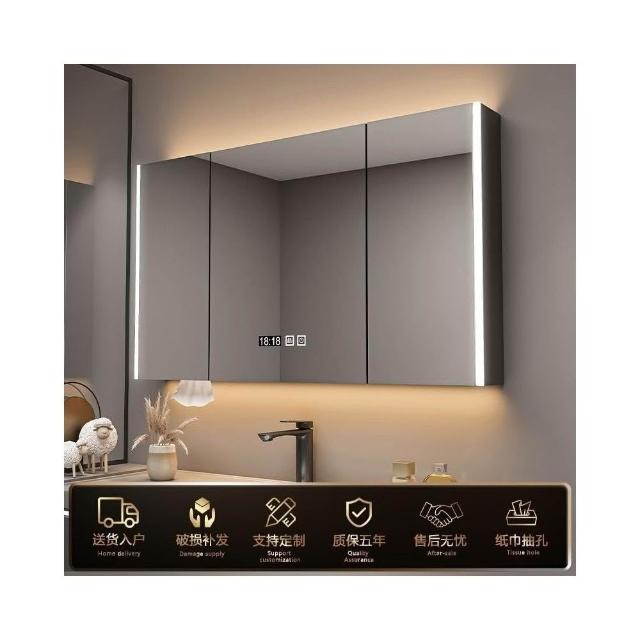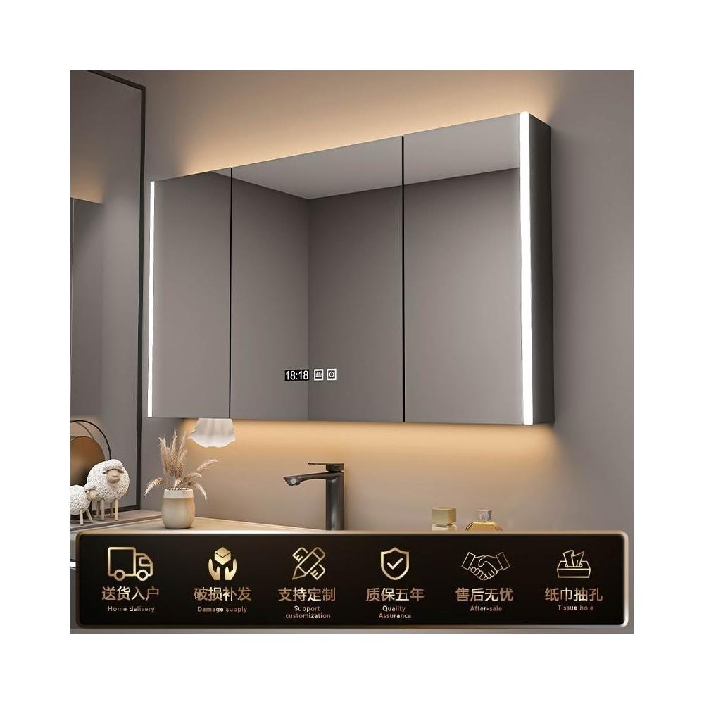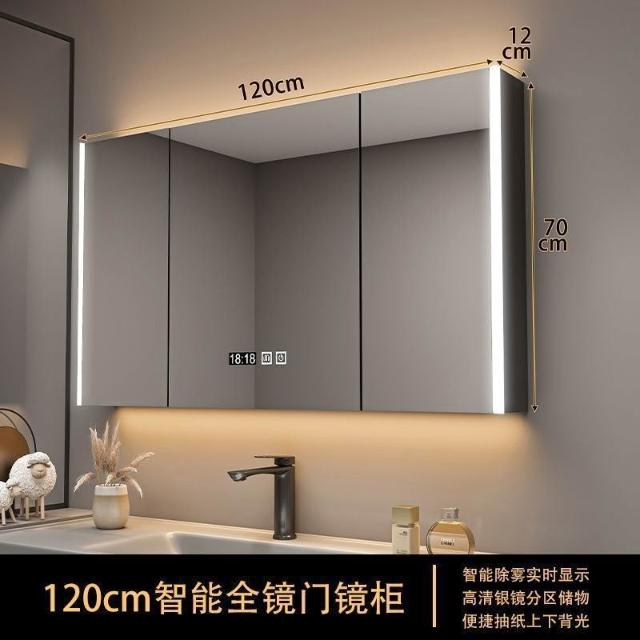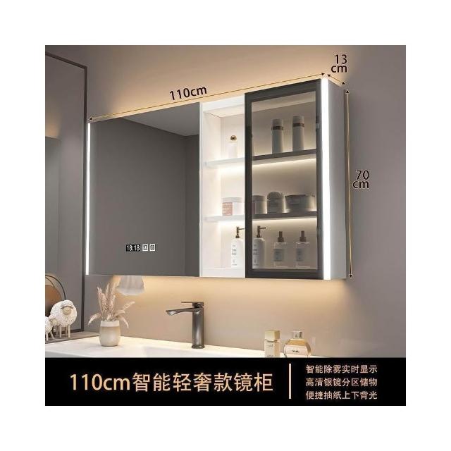 實木浴室智能鏡櫃 單獨掛墻式帶燈 除霧衛生間鏡子帶收納一體櫃