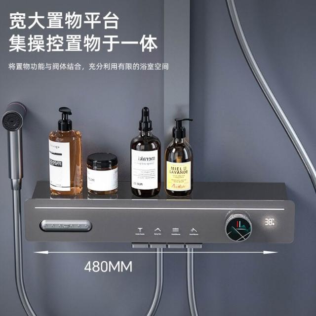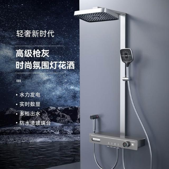 新款家用精銅氛圍燈 置物數顯花灑套裝 一整套手持淋浴花灑套裝
