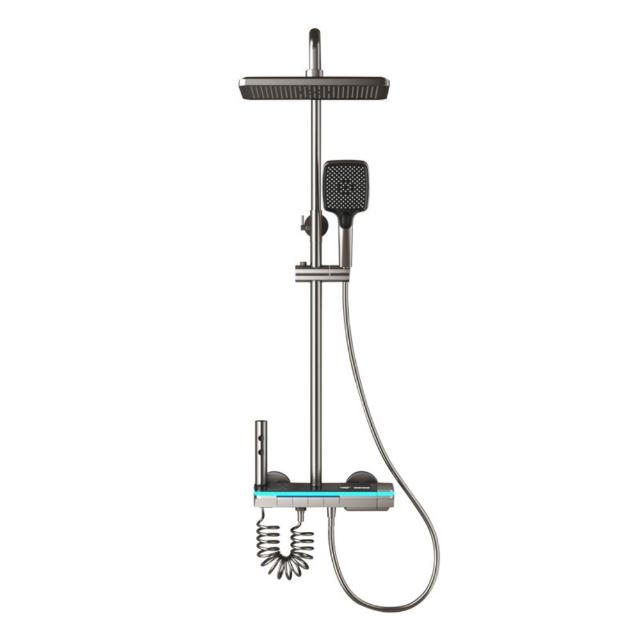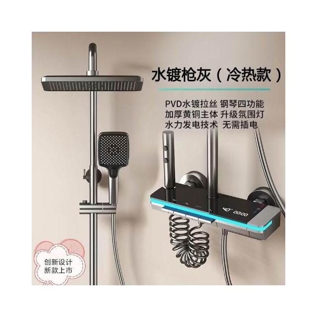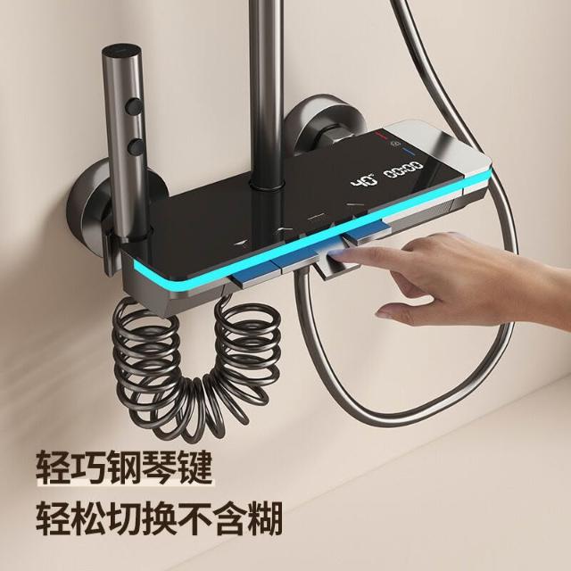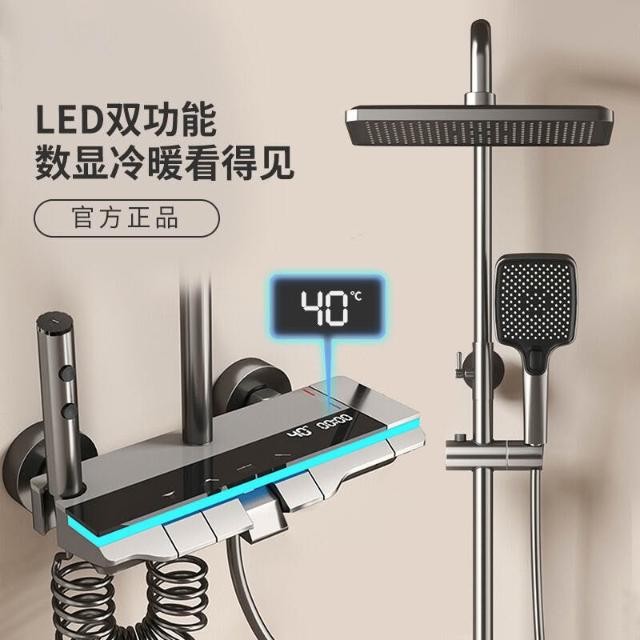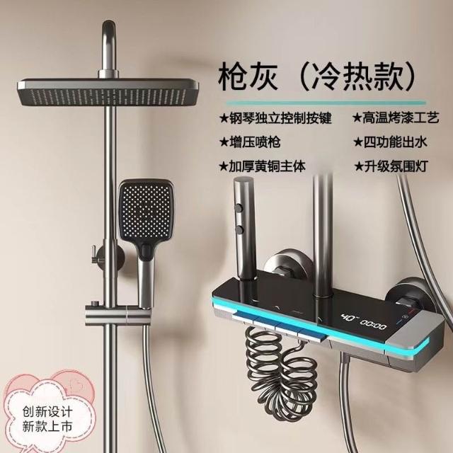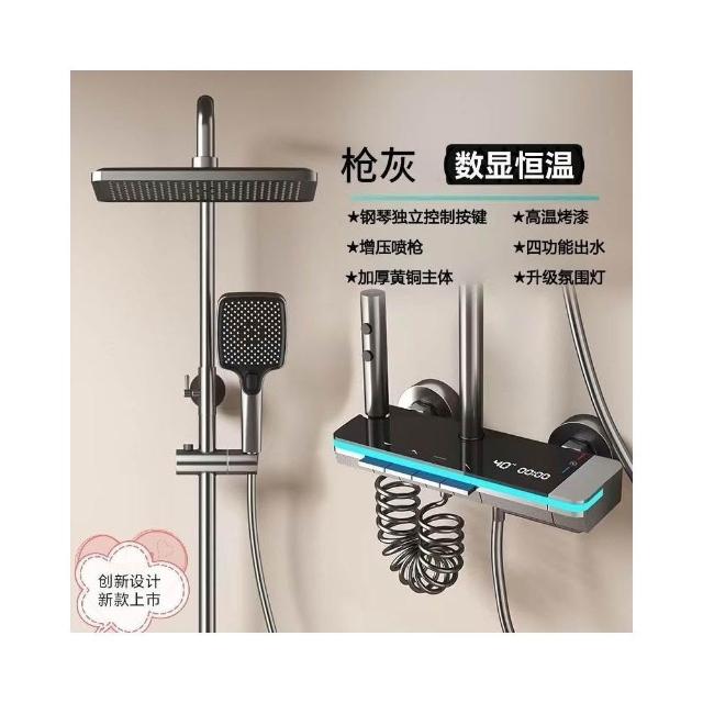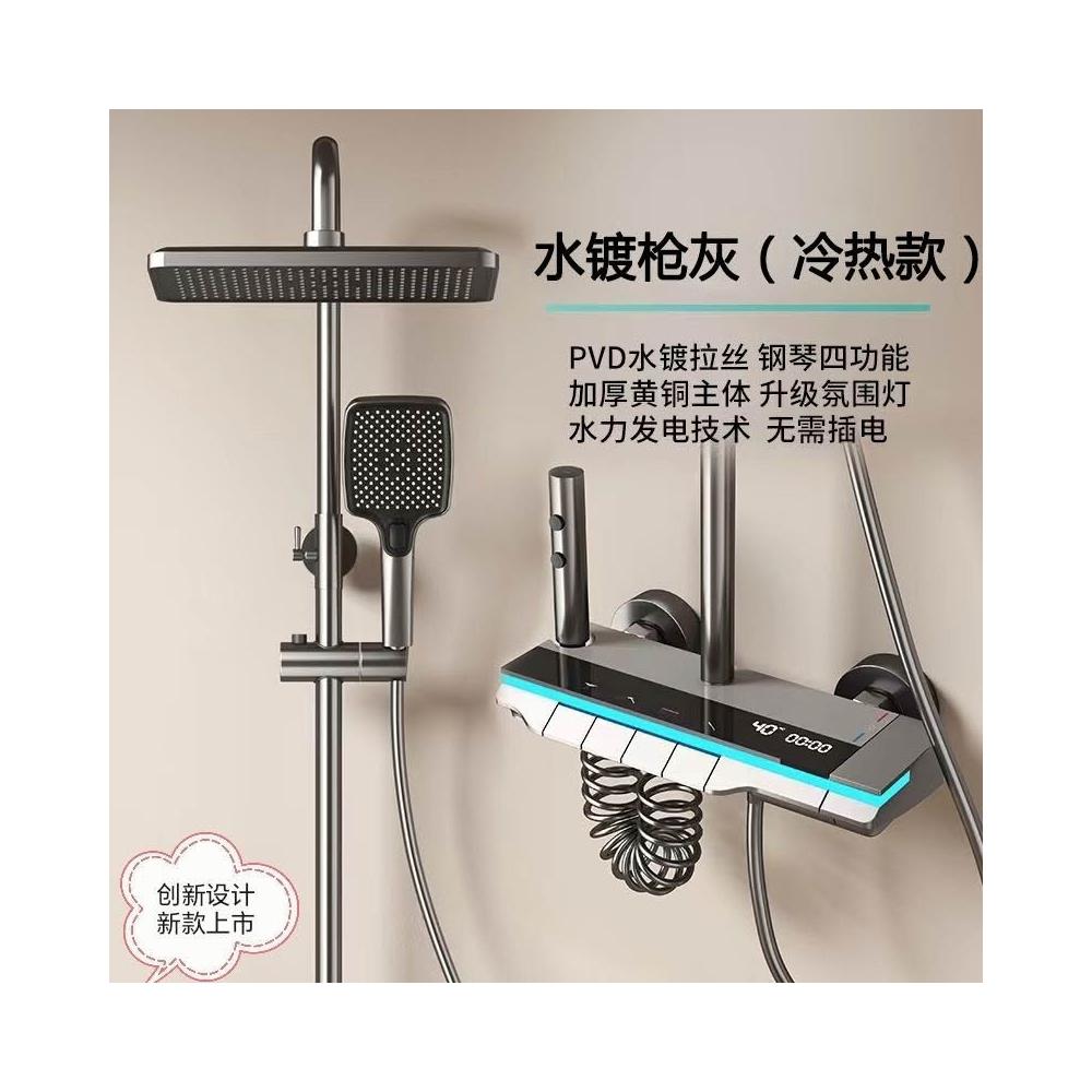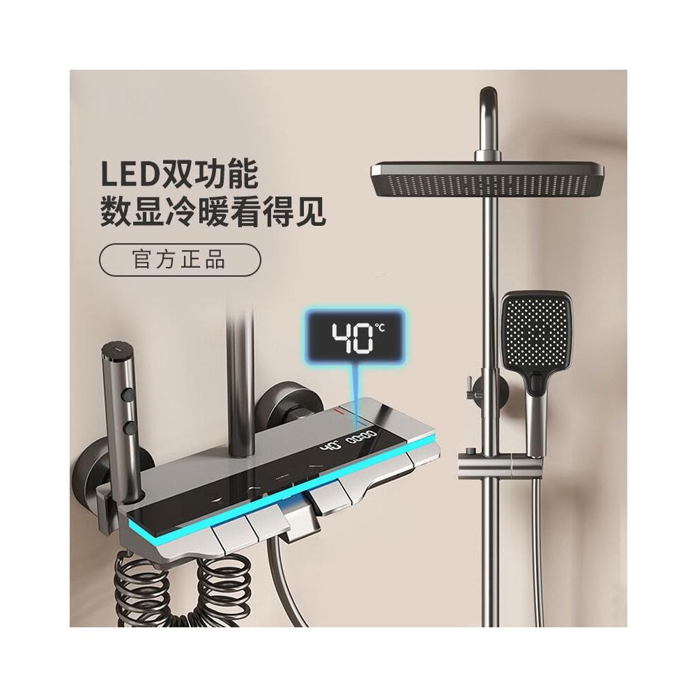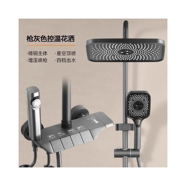 享淋淋浴花灑套裝 槍灰色全銅淋浴器花灑家用恒溫增壓噴頭浴室淋雨