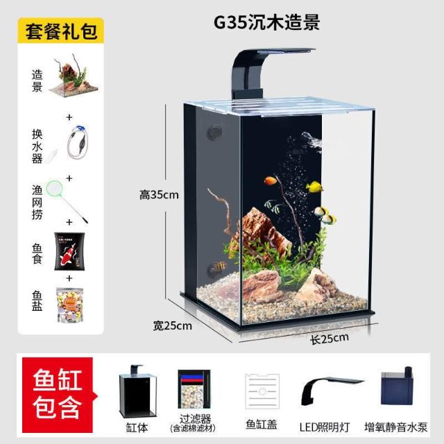 魚缸小型家用 超白玻璃魚缸 觀賞魚 熱帶魚桌面 生態造景辦公室立體缸