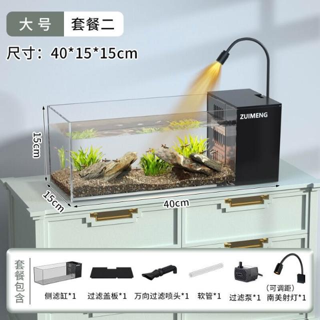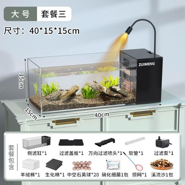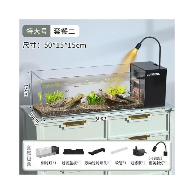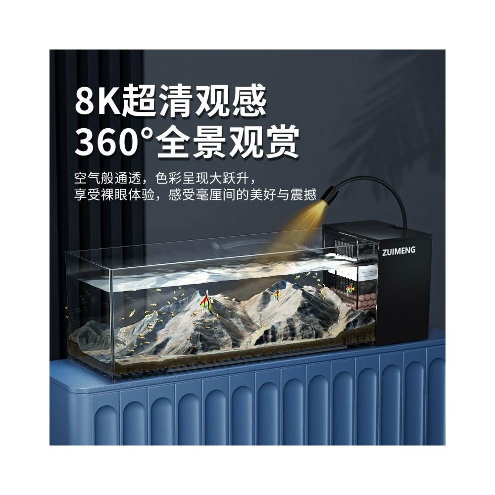 魚缸新款家用客廳 側濾觀賞魚缸溪流造景生態 過濾製氧一體機桌面缸