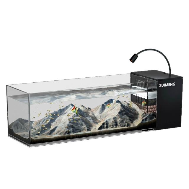 魚缸新款家用客廳 側濾觀賞魚缸溪流造景生態 過濾製氧一體機桌面缸