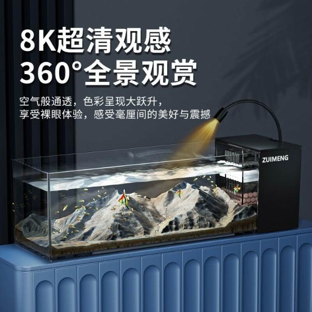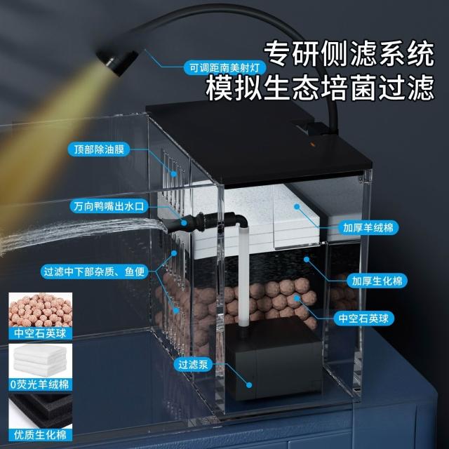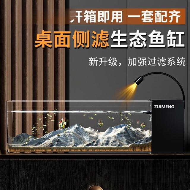 魚缸新款家用客廳 側濾觀賞魚缸溪流造景生態 過濾製氧一體機桌面缸