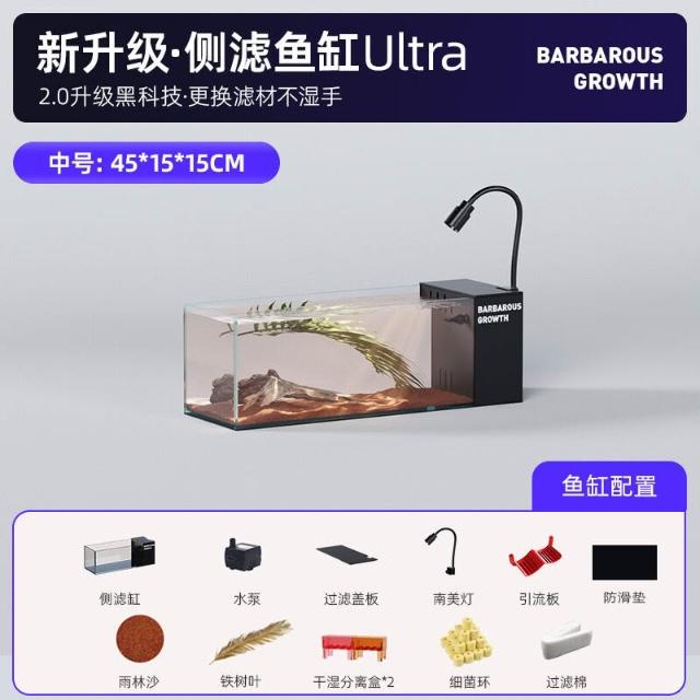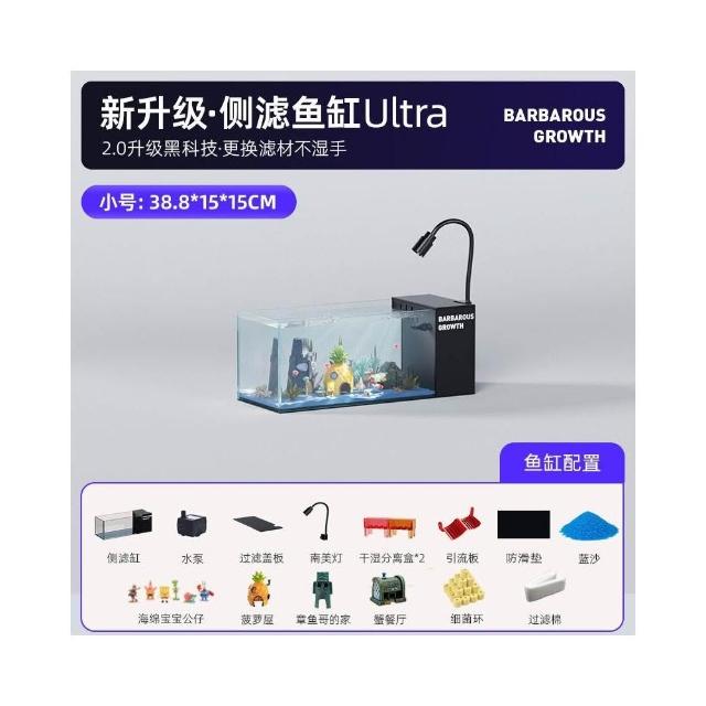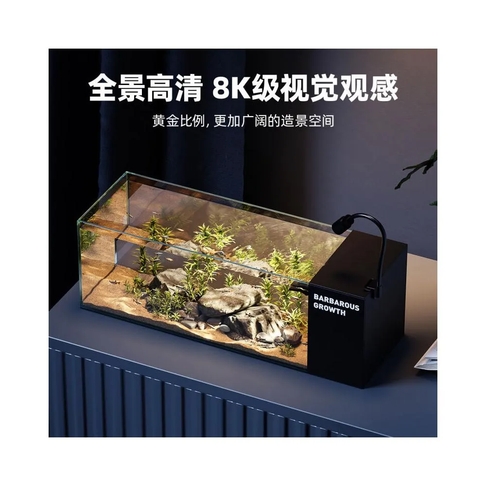 新款桌面溪流缸金晶超白玻璃 側濾自循環辦公茶桌客廳造景魚缸