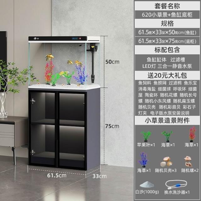 新款魚缸客廳小型落地玻璃 金魚缸家用免換水 造景帶櫃子立式水族箱