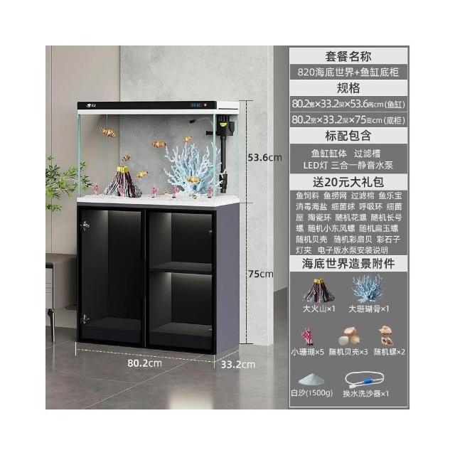 新款魚缸客廳小型落地玻璃 金魚缸家用免換水 造景帶櫃子立式水族箱